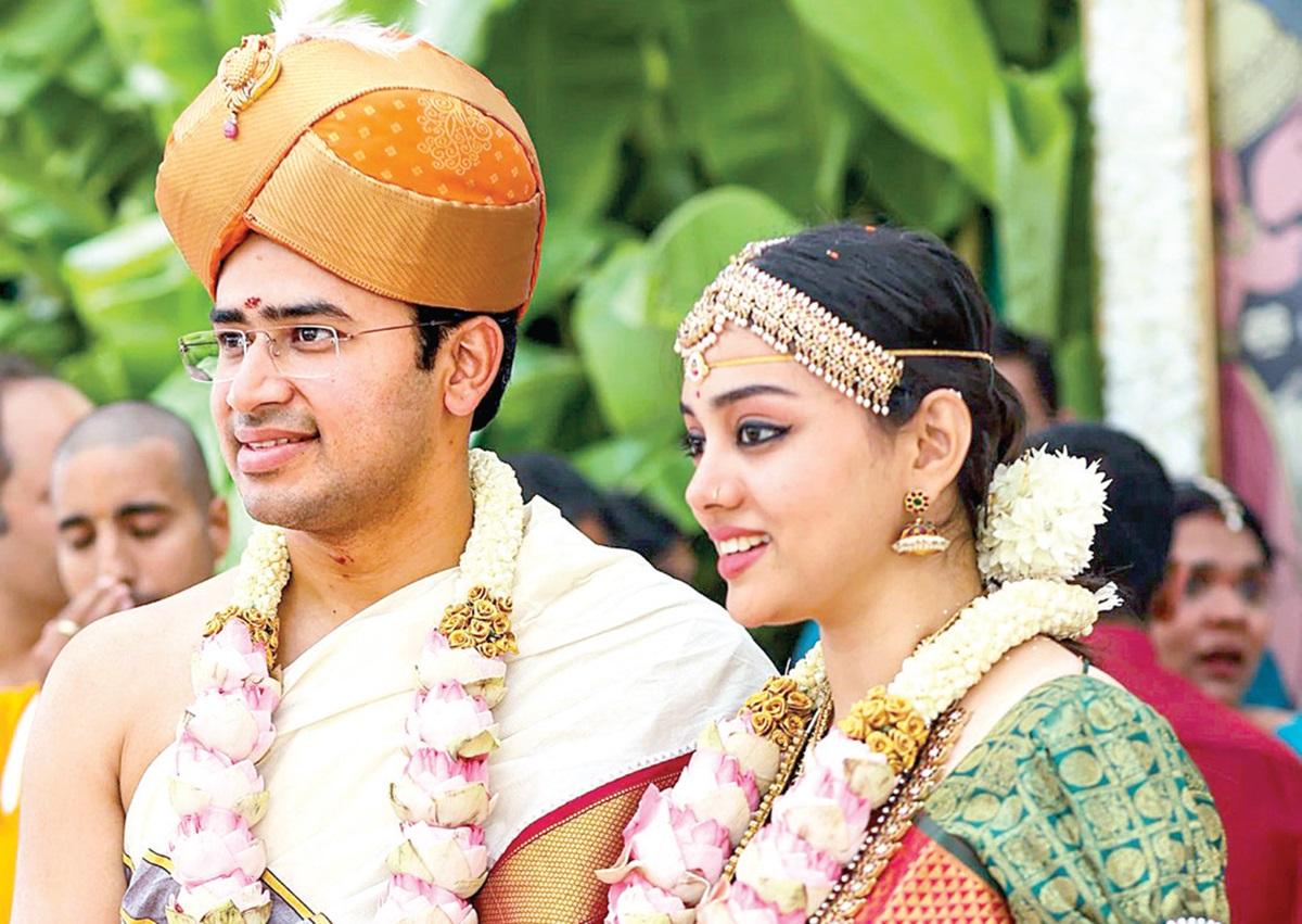 பெங்களூரு: பெங்களூரு பாஜக எம்.பி.யும், பாஜக இளைஞர் அணி தலைவருமான தேஜஸ்வி சூர்யா தமிழகத்தை சேர்ந்த கர்னாடக சங்கீத பாடகி சிவஸ்ரீ ஸ்கந்த பிரசாத்தை நேற்று திருமணம் செய்துகொண்டார். பெங்களூருவில் நடந்த இந்த திருமணத்தில் பாஜக மூத்த தலைவர் பி.எல்.சந்தோஷ், தமிழக தலைவர் கே.அண்ணாமலை உள்ளிட்டோர் பங்கேற்றனர்.
