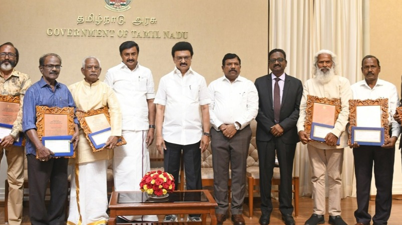 அவர்களுக்கு ‘கலைச் செம்மல்’ விருதுகளையும், விருதுக்கான செப்பு பட்டயம், ரூ.1 லட்சத்துக்கான காசோலை, பாராட்டு சான்றிதழ்களையும் முதல்வர் ஸ்டாலின் நேற்று வழங்கினார்.