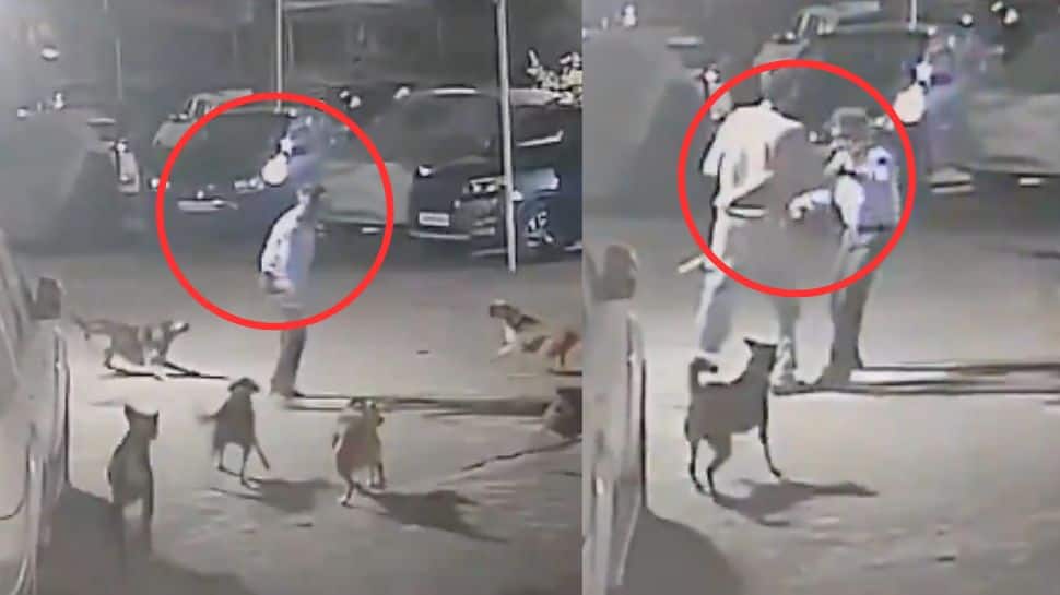 Viral Video Of Watchman Who Got Beaten Up By Dog Lover : தன்னை கடிக்க வந்த நாய்களிடம் இருந்து தன்னை தற்காத்து கொள்வதற்காக ஒரு நபர், கம்பெடுத்தார். இதை பார்த்த ஒரு இளைஞர் கம்பெடுத்தவரை அடித்தார். இது குறித்த சிசிடிவி காட்சிகள் இணையத்தில் வைரலாகி வருகிறது.