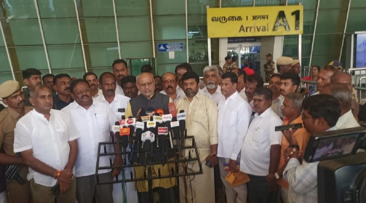 கோவை விமான நிலையத்தில் செய்தியாளர்களிடம் இன்று அவர் கூறியதாவது: ”முன்னாள் அமைச்சர் வேலுமணி மகன் திருமண நிகழ்ச்சியில் கலந்து கொள்வதற்காக கோவை வந்துள்ளேன். மகாராஷ்டிராவில் பல்வேறு பகுதிகளில் தமிழர்கள் மகிழ்ச்சியுடன் வாழ்ந்து வருகின்றனர். தேசிய உணர்வு மட்டும் தான் இந்திய தேசத்தையும் தமிழகத்தின் நலனையும் காக்கும்.
