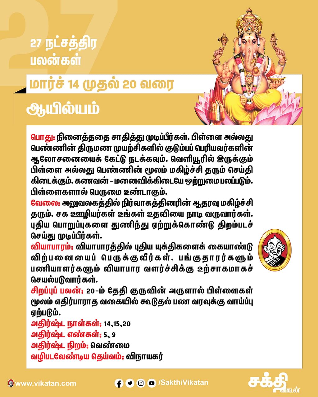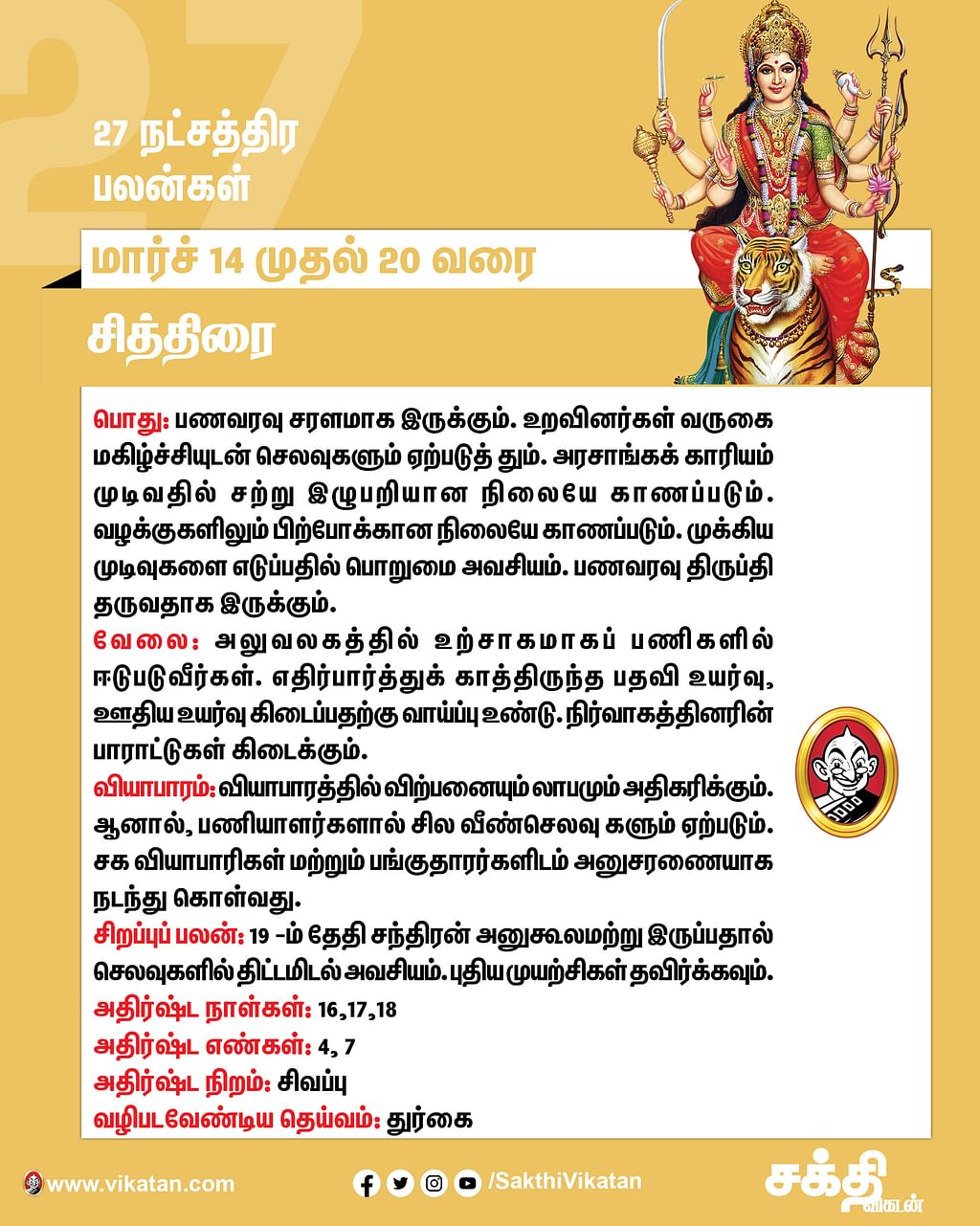 நட்சத்திர பலன்கள்: மார்ச் 14 முதல் மார்ச் 20 வரை #VikatanPhotoCards March 13, 2025 by விகடன் Source link