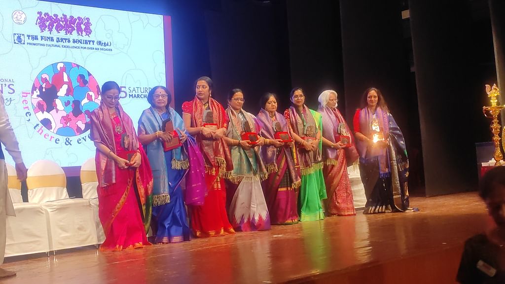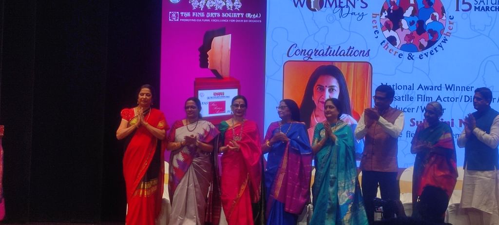 மும்பை செம்பூரில் உள்ள பைன் ஆர்ட்ஸ் சொசைட்டி சார்பாக ஒவ்வொரு ஆண்டும் மகளிர் தினத்தையொட்டி பல்வேறு துறைகளில் சாதனை படைத்தவர்களுக்கு விருது வழங்கப்பட்டு வருகிறது. இந்த ஆண்டுக்கான விருது நேற்று இரவு நடந்தது.