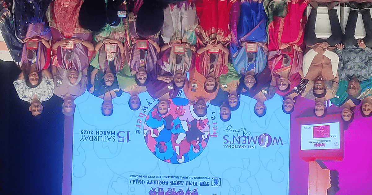 மும்பை செம்பூரில் உள்ள பைன் ஆர்ட்ஸ் சொசைட்டி சார்பாக ஒவ்வொரு ஆண்டும் மகளிர் தினத்தையொட்டி பல்வேறு துறைகளில் சாதனை படைத்தவர்களுக்கு விருது வழங்கப்பட்டு வருகிறது. இந்த ஆண்டுக்கான விருது நேற்று இரவு நடந்தது.