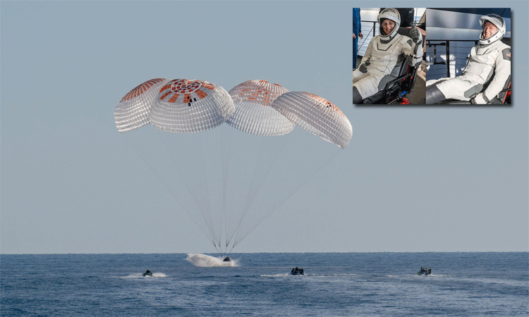 பாராசூட் அவர்களின் கேப்சூலை கடலில் இறக்க, ஏற்கனவே அங்கு வந்திருந்த நாசா அதிகாரிகள், விண்கலத்தில் இருந்து சுனிதா வில்லியம்ஸ் உட்பட 4 பேரையும் படகில் ஏற்றி அழைத்துச் சென்றனர். பூமிக்கு திரும்பிய விண்வெளி வீரர்களும் 4 பேரும் உற்சாகத்துடன் கையசைத்தனர். தற்போது அவர்களால் நடக்க முடியவில்லை என்றாலும், ஒரு வாரத்தில் இயல்பு நிலைக்கு திரும்புவார்கள் என்று கூறப்படுகிறது.