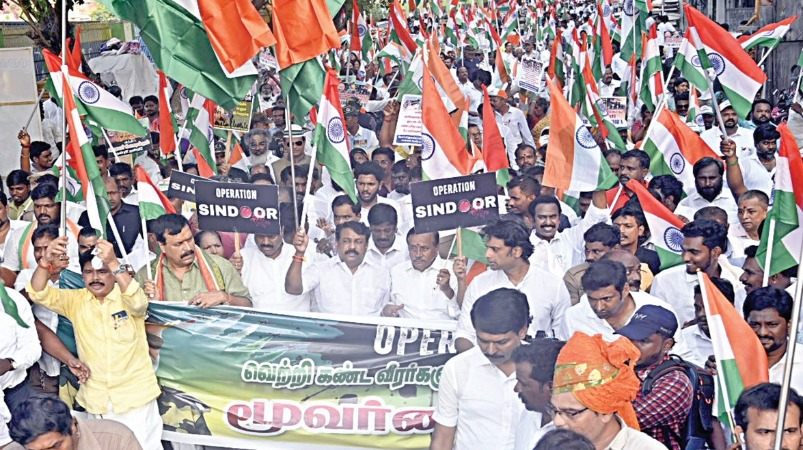 பாகிஸ்தானுக்கு எதிரான இந்தியாவின் ‘ஆபரேஷன் சிந்தூர்’ தாக்குதலில் வெற்றி கண்ட வீரர்களுக்கும், வெற்றிக்கு வித்திட்ட பிரதமர் மோடிக்கும் நன்றி தெரிவிக்கும் வகையில் தமிழக பாஜக சார்பில் ‘மூவர்ண கொடி பேரணி’ சென்னை புதுப்பேட்டையில் நேற்று நடைபெற்றது. இந்த பேரணிக்கு பாஜக மாநில தலைவர் நயினார் நாகேந்திரன் தலைமை தாங்கினார்.