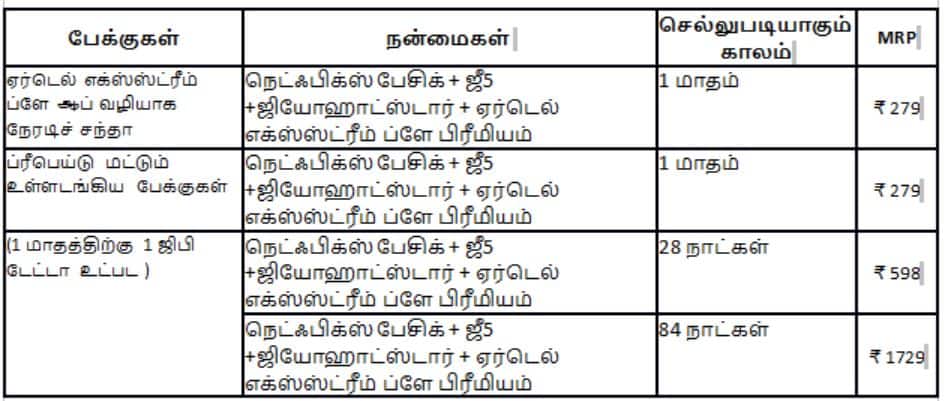 இவ்வளவு பெரிய மற்றும் சூப்பரான பிளான்களை முதன்முறையாக இந்தியாவிலேயே ஏர்டெல் மட்டுமே வழங்குகிறது. பொழுதுபோக்கு அனுபவத்தை மேம்படுத்தும் வகையிலும், வாடிக்கையாளர்களுக்கு எளிதான வகையில் சப்ஸ்கிரிப்சன் இருக்கும் வகையிலும் இந்தியாவில் ஏர்டெல் மட்டுமே இப்படியான திட்டத்தை அறிமுகப்படுத்தியுள்ளது. 1 மாதத்துக்குச் செல்லுபடியாகும் ரூ. 279 என்ற கவர்ச்சிகரமான அறிமுக விலை பிளானில் தொடங்கி ரூ. 750 மதிப்புள்ள பல்வேறு பிரபலமான ஸ்ட்ரீமிங் தளங்களை வாடிக்கையாளர்கள் அணுகலாம். இதன் மூலம் இவ்வளவு பரந்த OTT ஸ்ட்ரீமிங் விருப்பத்தேர்வுகளை அணுக அனுமதிக்கும் ஒரே தொலைத்தொடர்பு நிறுவனமாக இது உள்ளது.