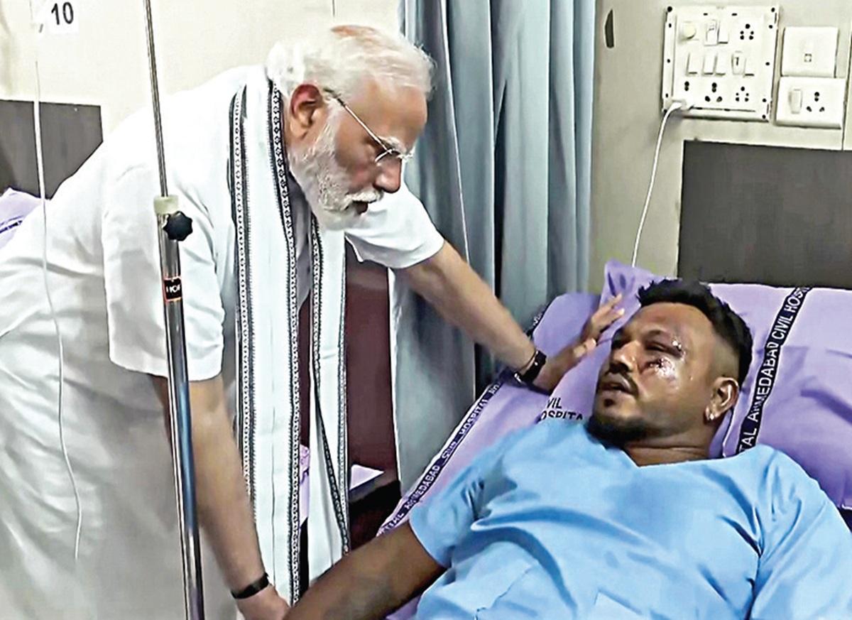 குஜராத் மாநிலம் அகமதாபாத்தில் ஏர் இந்தியா விமானம் விபத்துக்குள்ளான இடத்தை நேற்று காலை பிரதமர் நரேந்திர மோடி நேரில் ஆய்வு செய்தார். அப்போது மீட்புப் பணிகள் குறித்து பிரதமருக்கு அதிகாரிகள் விளக்கம் அளித்தனர். பின்னர் அகமதாபாத் சிவில் மருத்துவமனைக்கு சென்ற மோடி, அங்கு சிகிச்சை பெற்று வருபவர்களை சந்தித்து நலம் விசாரித்தார். பிரதமருடன் மத்திய விமானப் போக்குவரத்துத் துறை அமைச்சர் ராம் மோகன் உள்ளிட்டோர் சென்றிருந்தனர்.