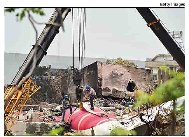அகமதாபாத்தில் விபத்துக்குள்ளான ஏர் இந்தியா விமானம் பல துண்டுகளாக உடைந்து விழுந்தது. இந்த விபத்தில் விமானத்தின் வால் பகுதி விமானம் விழுந்த பி.ஜெ.மருத்துவ கல்லூரி விடுதியில் விழுந்தது. விடுதியின் மாடி பகுதியில் விமானத்தின் வால் பகுதி சிக்கி இருந்தது. மீட்பு படையினர் வால் பகுதியை வெட்டி எடுத்தபோது அதில் ஒரு பணிப்பெண் உடல் கருகி அழுகிய நிலையில் இருந்தது. தீயை அணைக்க பயன்படுத்திய தண்ணீரில் உடல் மிதந்து கொண்டிருந்தது. மற்றொரு உடல் விடுதி இடிபாடுகளில் சிக்கி இருந்தது. அந்த உடலும் மிகவும் அழுகிய நிலையில் இருந்தது. அந்த உடல் மாணவருக்குறியதா அல்லது மருத்துவ கல்லூரி ஊழியரா என்று தெரியவில்லை. விமானத்தின் வால் பகுதியை கேஸ் கட்டர் மூலம் வெட்டி கிரேன் மூலம் கீழே இறக்கினர். விபத்துக்குள்ளான விமானத்தின் பாகங்கள் இன்னும் முழுமையாக அகற்றப்படவில்லை.
