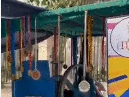 22 வயதான தேசிய தடகள வீரர் தீபக், தனது கரும்புச்சாறு விற்கும் வண்டியை அலங்கரிக்க மாநில அளவிலான தடகள போட்டிகளில் தான் பங்கேற்று வென்ற 16 பதக்கங்களை பயன்படுத்தி அலங்கரித்து வைத்துள்ளார். அந்த வண்டியில்தான் தனது வாழ்வாதாரத்திற்காக தெருக்களில் கரும்புச்சாறு விற்பனை செய்து வருகிறார்.