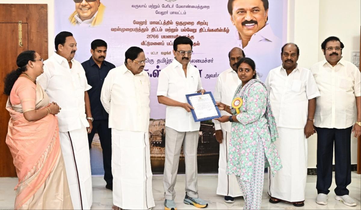 இது தொடர்பாக தமிழக அரசு வெளியிட்டுள்ள செய்திக் குறிப்பு: தமிழக முதல்வர் மு.க.ஸ்டாலின் இன்று (ஜூன் 25) வேலூர் மாவட்டத்தில் பல்வேறு நிகழ்ச்சிகளில் கலந்து கொண்டார். அப்போது, காட்பாடி வட்டம் சேர்க்காடு கிராமத்தைச் சேர்ந்த கூலித் தொழிலாளி பொற்செல்வி என்பவர் முதல்வரிடம் கோரிக்கை மனு ஒன்றை அளித்தார். அதில் அவர் ஆதரவற்ற நிலையில் வறுமை சூழ்நிலையில் வாழ்வதாக குறிப்பிட்டிருந்தார்.