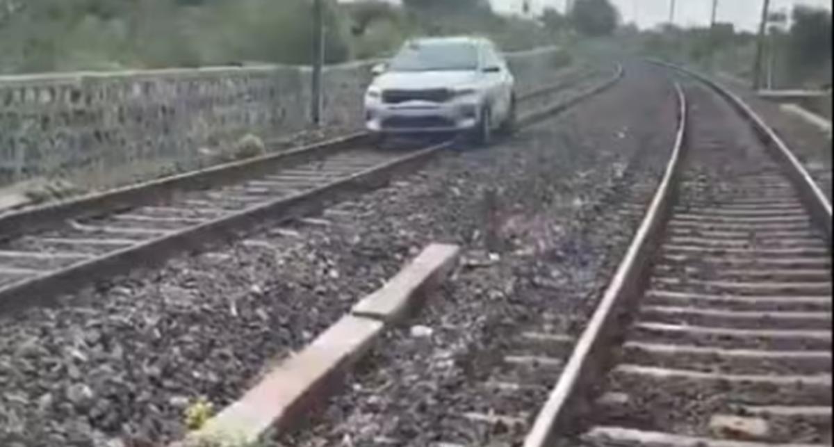 தெலங்கானாவில் தண்டவாளம் மீது கார் ஓட்டிய இளம்பெண்: ரயில் போக்குவரத்து பாதிப்பு