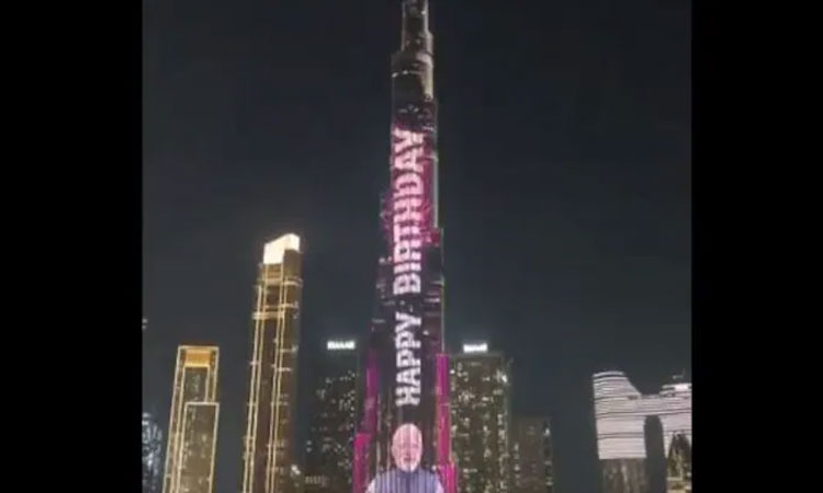 இந்தநிலையில், துபாயில் உள்ள உலகின் மிக உயர்ந்த கட்டடமாக கருதப்படும் புர்ஜ் கலிபாவில் பிரதமர் நரேந்திர மோடியை கவுரவவிக்கும் விதமாக, அவரது புகைப்படத்தை ஒளிரச் செய்து பிறந்த நாள் வாழ்த்து தெரிவிக்கப்பட்டது.