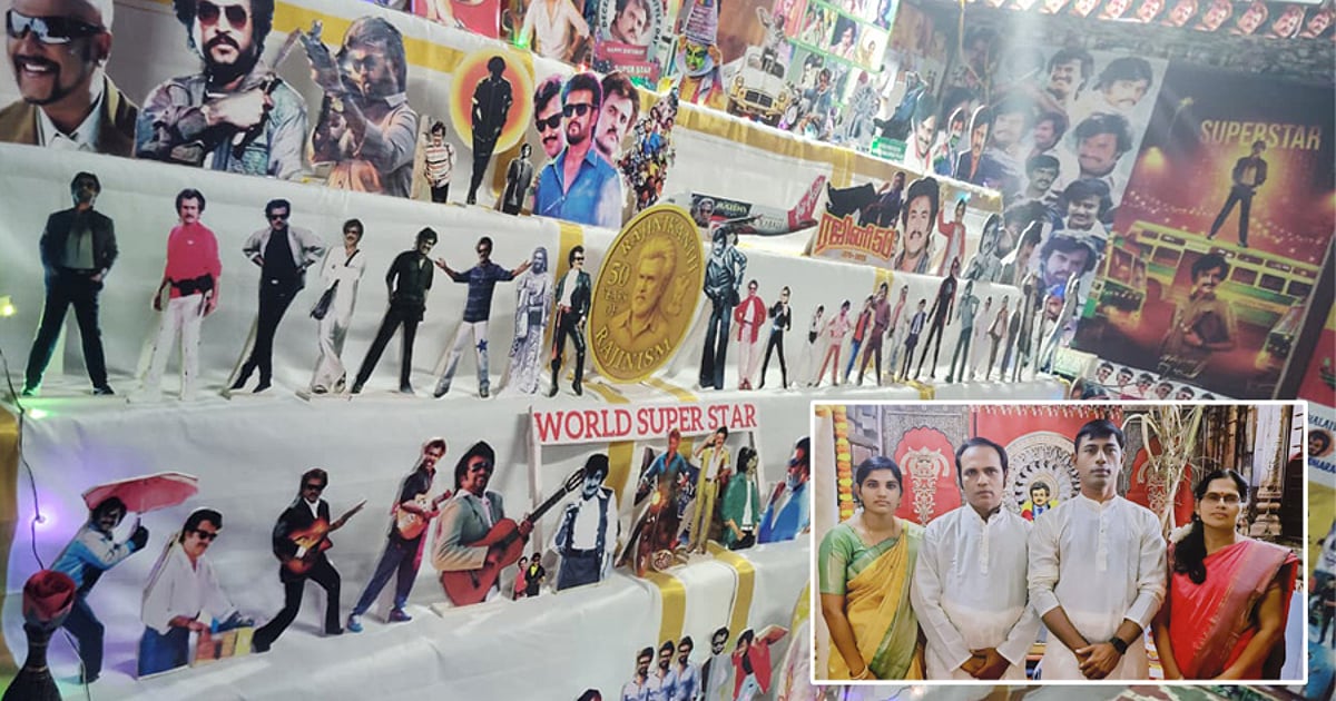 ஒவ்வொரு விஷேசத்துக்கு ஏத்தமாறி கோவில அப்டேட் பண்ணுவோம். இது நவராத்திரி காலம். அது மட்டும் இல்லாம ரஜினி சினிமாக்கு வந்து 50 வருசம் ஆனது கொண்டாடுறதுக்கும் அவருக்கு கொலு வச்சுருக்கோம். கொலு பாக்க வர்ற எல்லாத்துக்கும் ஒரு டைரியும் ஸ்விட் பாக்ஸ்-ம் கொடுக்கிறோம்.