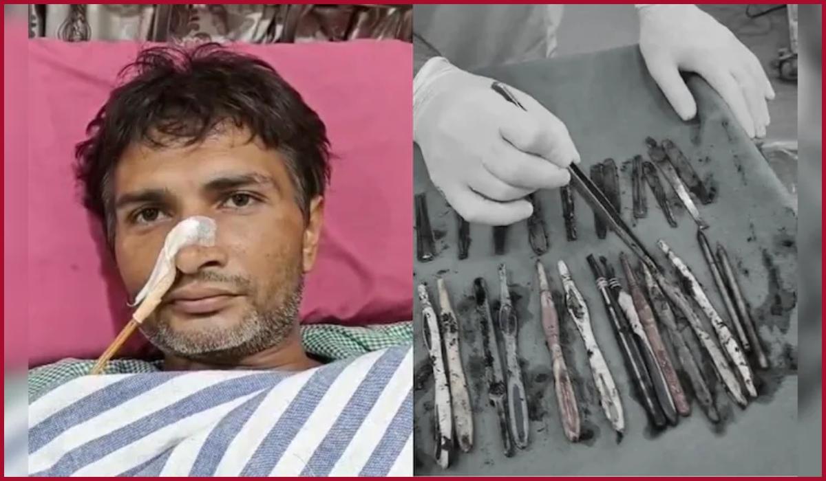 உத்தரப் பிரதேச மாநிலம், காசியாபாத்தில் உள்ள ஹாபூர் என்ற இடத்தில் ஒரு போதை மறுவாழ்வு மையம் உள்ளது. அதில், 35 வயதான சச்சின் என்பரை குடும்பத்தினர் சிகிச்சைக்காக சேர்த்துள்ளனர். அங்கு நோயாளிகளுக்கு குறைவான உணவுதான் வழங்கப்பட்டதாக தெரிகிறது. இதனால், சச்சின் கடும் கோபத்தில் இருந்ததாக தெரிகிறது. இதனால் அவர் கரண்டி, பல் துலக்கும் பிரஸ் ஆகியவற்றைத் திருடிக் கொண்டு, குளியலறைக்குச் சென்று அவற்றை சிறு சிறு துண்டுகளாக உடைத்து சாப்பிட்டுள்ளார். பின்னர் தண்ணீரை அருந்தி மேனேஜ் செய்துள்ளார்.