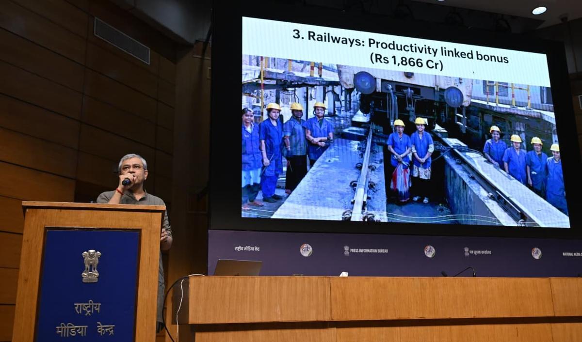 ரயில்வேயில் பணியாற்றும் தண்டவாளப் பராமரிப்பாளர்கள், ஓட்டுநர்கள், கார்டுகள், ஸ்டேஷன் மாஸ்டர்கள், மேற்பார்வையாளர்கள், தொழில்நுட்ப ஊழியர்கள் மற்றும் உதவியாளர்கள், ரயில்வே அமைச்சக ஊழியர்கள் மற்றும் இதர சி பிரிவு தொழிலாளர்களுக்கு தீபாவளி போனஸ் வழங்கப்படும். இவ்வாறு ரயில்வே அமைச்சர் அஸ்வினி வைஷ்ணவ் கூறினார்.
