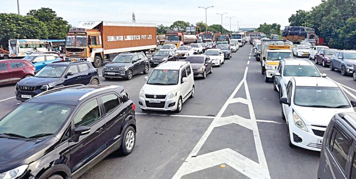 இதையடுத்து, வாகனங்கள் எளிதாக கடந்து செல்ல கூடுதலாக 2 வழித்தடங்கள் ஏற்படுத்தப்பட்டன. மொத்தம் 9 வழித்தடங்களில் வாகனங்கள் செல்வதற்கு அனுமதிக்கப்பட்டாலும் 30 நிமிடங்கள் காத்திருக்க வேண்டிய சூழல் ஏற்பட்டுள்ளது.