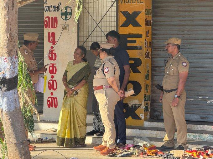 வேலுசாமிபுரத்தில் சம்பவம் நடந்த இடம் தற்போது போலீசாரின் கட்டுப்பாட்டில் உள்ளது. அங்கு வெளியாட்கள் யாரும் உள்ளே செல்ல தடை விதிக்கப்பட்டுள்ளது. அசம்பாவித சம்பவத்துக்குப் பிறகு அங்கு எத்தகைய சூழல் ஏற்பட்டதோ அது அப்படியே இருந்தது. அவற்றை அருணா ஜெகதீசன் பார்வையிட்டார். பொதுமக்களின் ஏராளமான காலனிகள், கட்சிக் கொடிகள் போன்றவை சிதறிக்கிடந்ததைப் பார்வையிட்ட அருணா ஜெகதீசன், நிகழ்ச்சி தொடர்பாக பல்வேறு கேள்விகளை எழுப்பினார்.