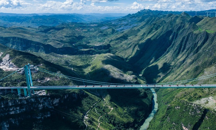இன்றைய நவீன உலகில் அனைத்துமே எளிதாக இருந்தாலும், உயரமான மலைப்பகுதிகளில் பாலம் கட்டுவது சவாலான ஒன்று தான். இருப்பினும் மலைப்பகுதிகளில் பாலங்களைக் கட்டுவதில் சீனா தான் உலகளவில் முன்னணியில் உள்ளது. ஏனெனில் உலகின் முதல் 100 உயரமான பாலங்களில் பாதிக்கும் மேல் சீனாவில் உள்ள குய்ஷோ மாகாணத்தில் தான் உள்ளது. இந்நிலையில் தற்போது குய்ஷோ மாகாணத்தில் புதிய பாலம் ஒன்றைக் கட்டி முடித்துள்ளது சீனா. இதன்மூலம் உலகின் உயரமான பாலங்களின் பட்டியலில் முதலிடத்தைப் பிடித்துள்ளது இந்தப் பாலம்.