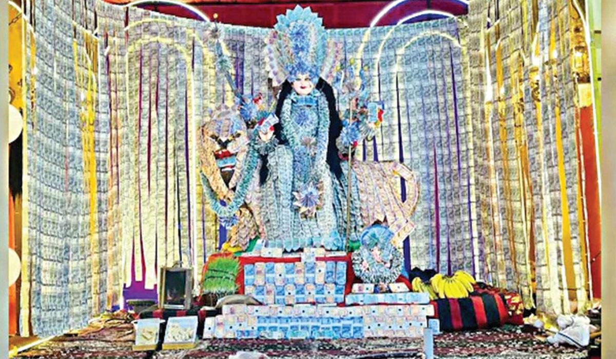 இதையொட்டி பாலேஸ்​வரி மாதாவுக்கு ரூ.51,51,551 மதிப்​புடைய கரன்சி நோட்​டு​களால் நேற்று முன்​தினம் பக்​தர்​களால் அலங்​காரம் செய்​யப்​பட்​டது. ரூ.500, ரூ.200, ரூ.100, ரூ.50 நோட்​டு​களால் இந்த அலங்​காரம் நடை​பெற்​ற​தாக கோயிலை நிர்​வகிக்​கும் பாலேஸ்​வர் யுவ மண்​டல் கமிட்டி தெரி​வித்​துள்​ளது.
