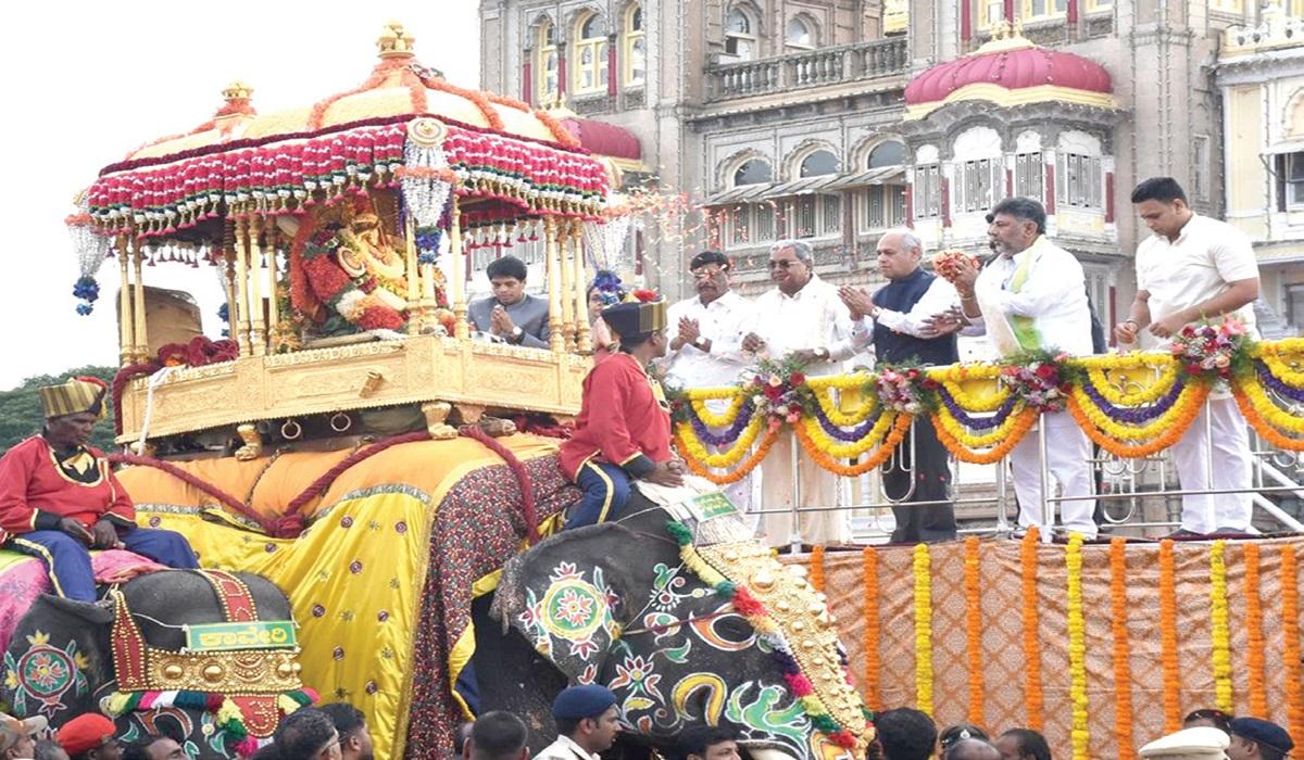 இதைத் தொடர்ந்து முதல்வர் சித்தராமையா மாலை 4.40 மணிக்கு ‘ஜம்போ சவாரி’ என அழைக்கப்படும் யானைகளின் ஊர்வலத்தை தொடங்கி வைத்தார். 56 வயதான அபிமன்யூ யானை 750 கிலோ எடை கொண்ட தங்க அம்பாரியில் சாமுண்டீஸ்வரி அம்மன் வீற்றிருக்கும் சிலையை சுமந்து ராஜ வீதியில் ஊர்வலமாக சென்றது.