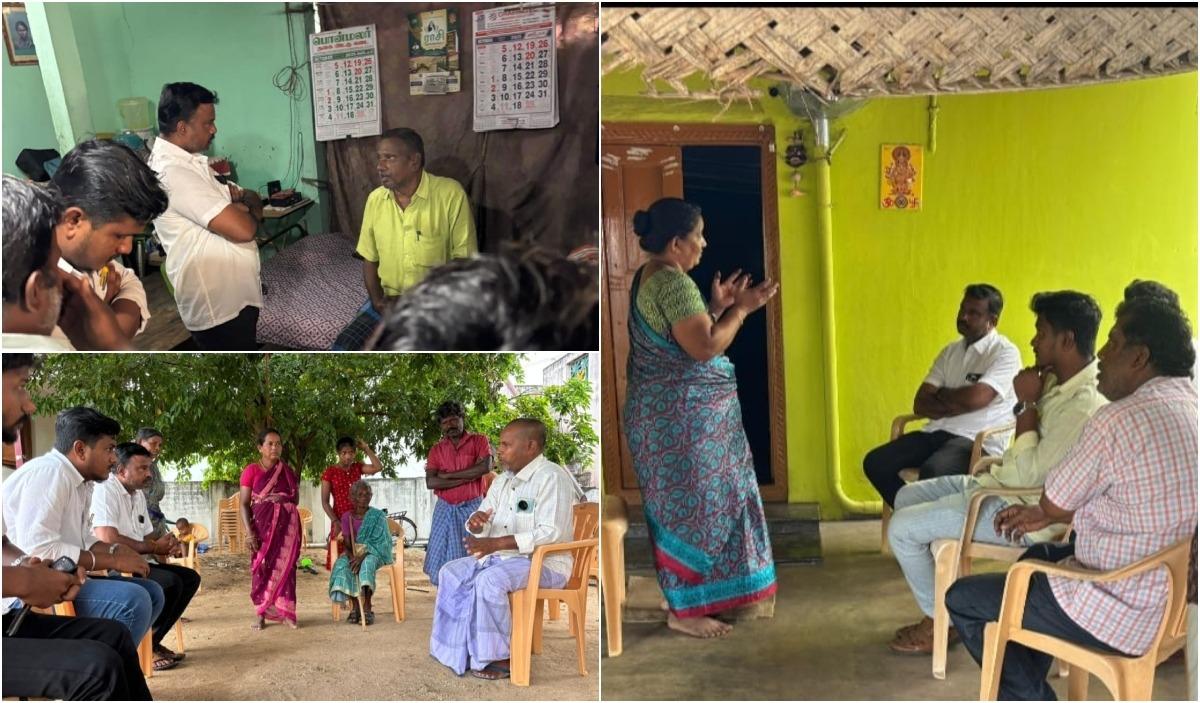 மேலும், விரைவில் கட்சியின் தலைவர் விஜய் பாதிக்கப்பட்டவர்களை நேரில் சந்தித்து ஆறுதல் தெரிவிக்க இருப்பதாகவும், உரிய உதவிகள் செய்து தருவதாக உறுதி அளித்து வருகின்றனர். இந்த சந்திப்புகளின்போது தவெக மேற்கு மண்டலச் செயலாளர் பாலு உள்ளிட்ட கட்சி நிர்வாகிகள் உடன் இருந்தனர்.