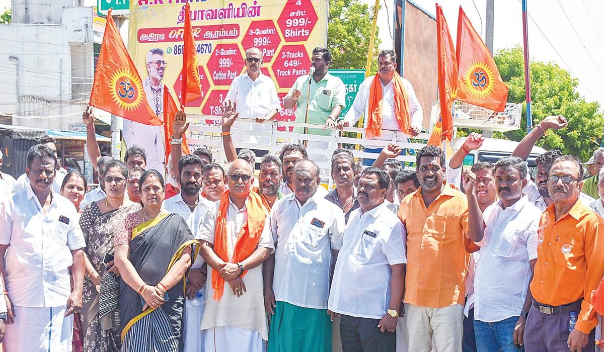 இதற்​கிடையே, ராமர் அவம​திக்​கப்​பட்ட சம்​பவத்​தில் தொடர்​புடைய அனை​வர் மீதும் நடவடிக்கை எடுக்க வேண்​டும், அந்த அமைப்பை தடை செய்ய வேண்​டும் என்று வலி​யுறுத்தி இந்து முன்​னணி, விஸ்வ இந்து பரிஷத் உள்​ளிட்ட இந்து அமைப்​பு​கள் சார்​பில், ஒருங்​கிணைப்​பாளர் என்​.ஆர்​.சீனி​வாசன் தலை​மை​யில் நேற்று முன்​தினம் மாவட்ட காவல் கண்​காணிப்​பாளரிடம் புகார் அளிக்​கப்​பட்​டது.