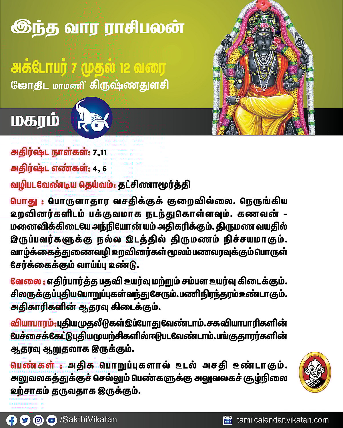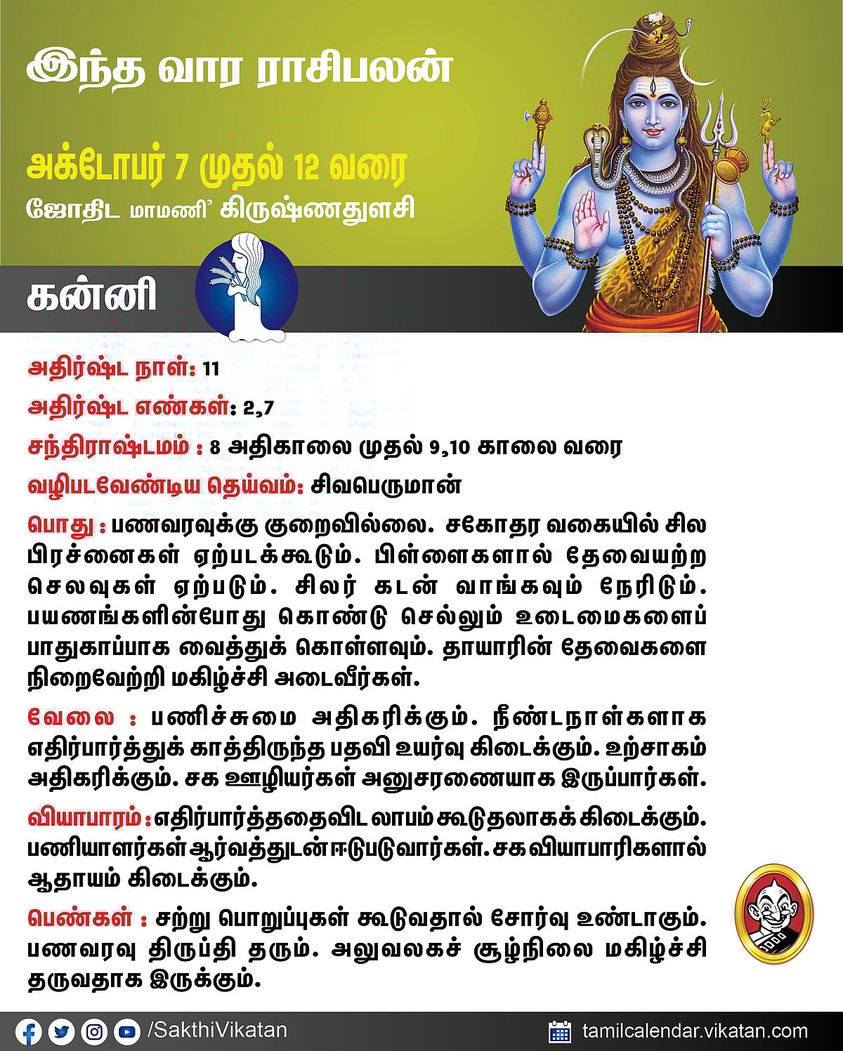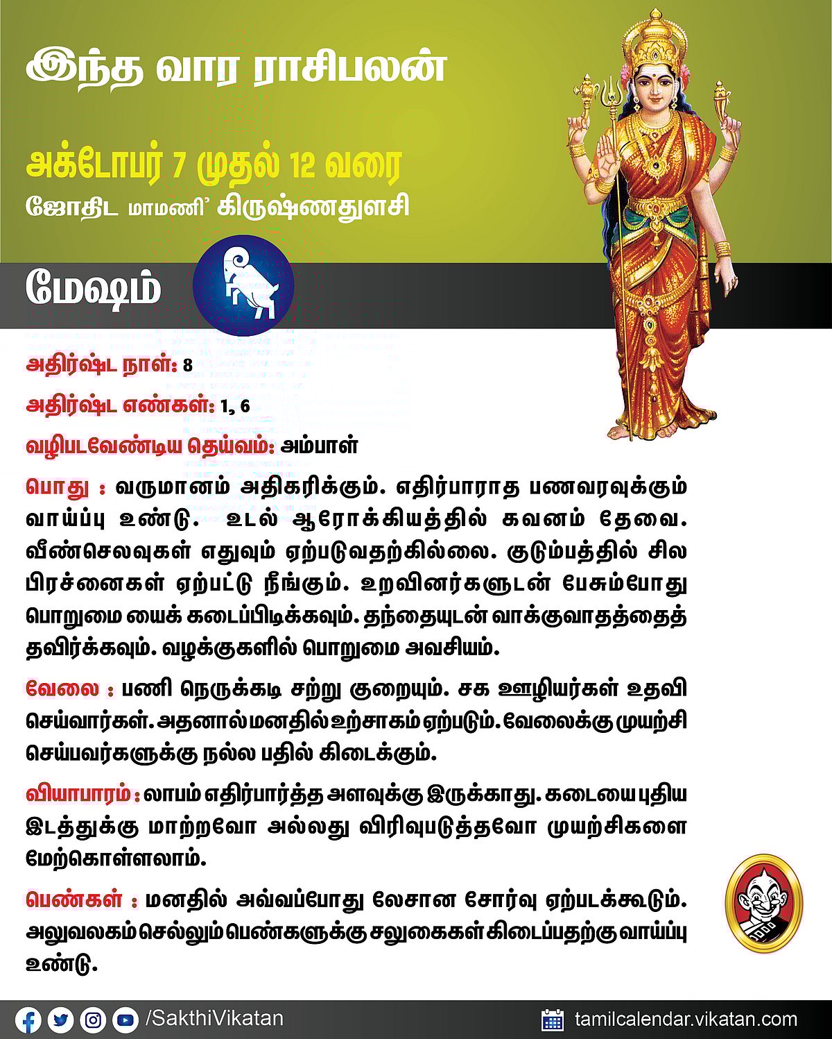 இந்த வார ராசிபலன் அக்டோபர் 7 முதல் 12 வரை #VikatanPhotoCards October 7, 2025 by விகடன் வார ராசிபலன் மேஷம் ரிஷபம் மிதுனம் கடகம் சிம்மம் கன்னி துலாம் விருச்சிகம் தனுசு மகரம் கும்பம் மீனம் Source link