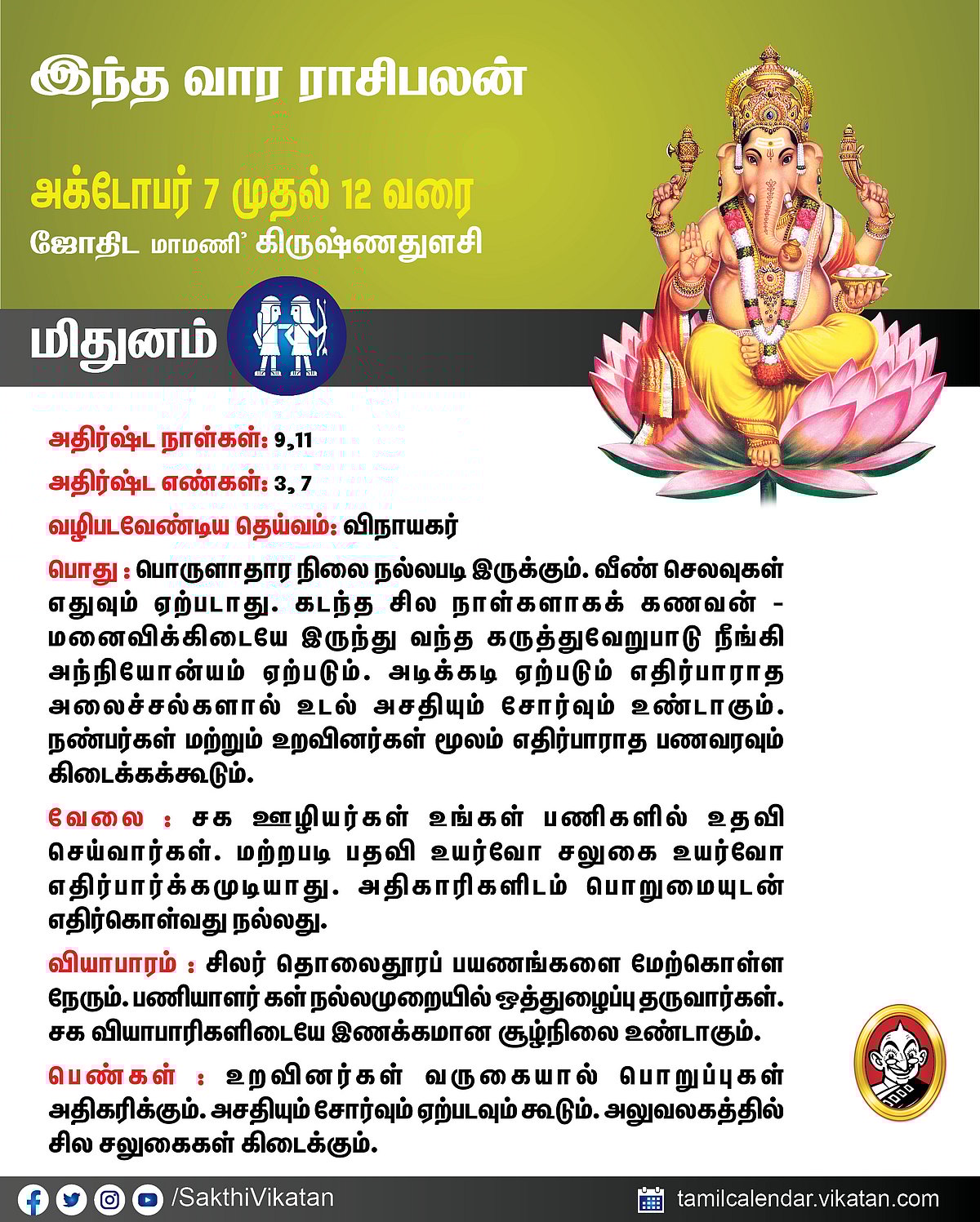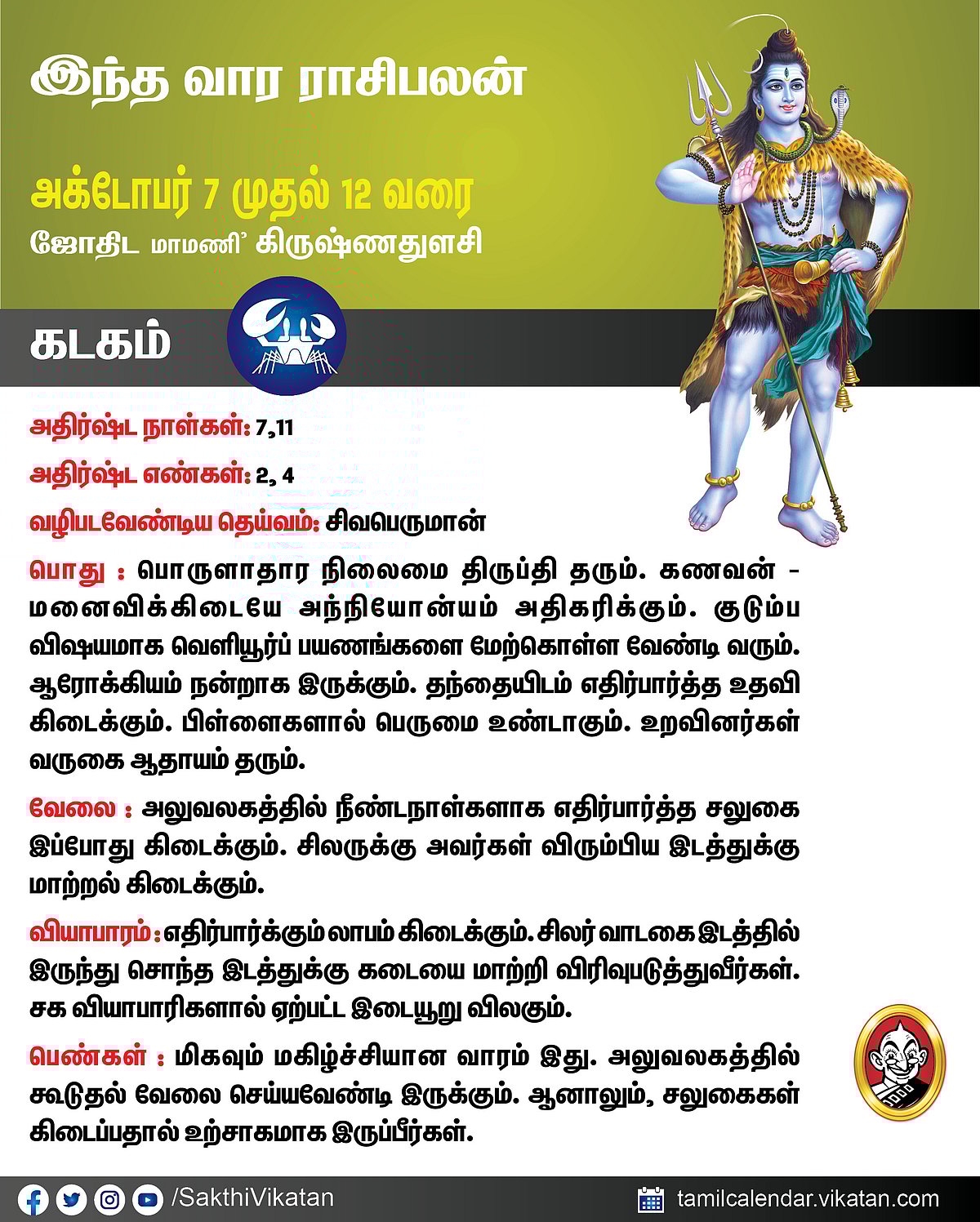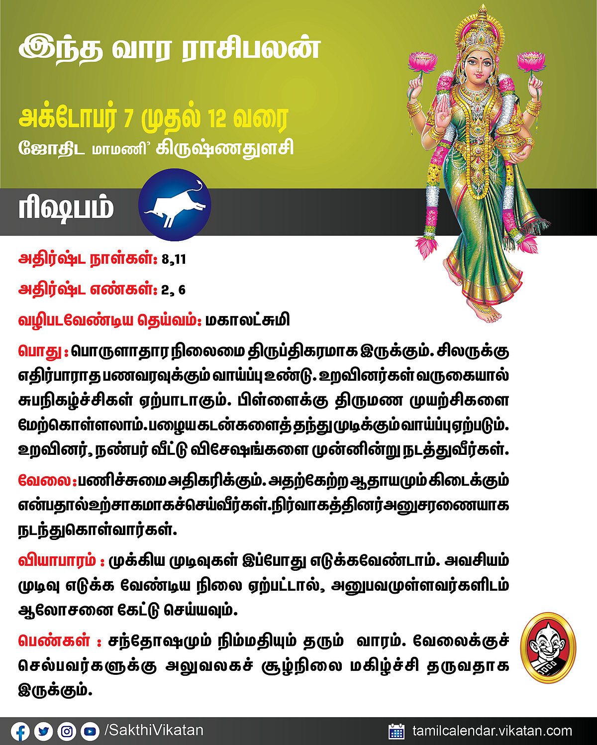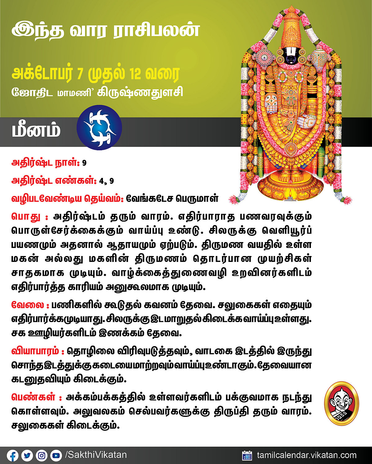 இந்த வார ராசிபலன் அக்டோபர் 7 முதல் 12 வரை #VikatanPhotoCards October 7, 2025 by விகடன் வார ராசிபலன் மேஷம் ரிஷபம் மிதுனம் கடகம் சிம்மம் கன்னி துலாம் விருச்சிகம் தனுசு மகரம் கும்பம் மீனம் Source link