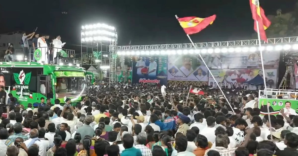 அ.தி.மு.க பிரச்சாரக் கூட்டத்தில் தவெக கொடியினைப் பிடித்தபடி சிலர் நின்று கொண்டிருந்தனர். அதைப் பார்த்த எடப்பாடி பழனிசாமி,