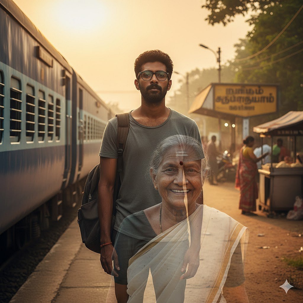 பிளாட்பாரத்தில் கால் வைத்ததும் அவனுள் ஏதோ ஒரு இனம் புரியாத பரவசம். சொந்த மண்ணின் பந்தமா? அல்லது ஆயாவைப் பார்க்கப் போகிறோம் என்ற சந்தோஷமா..?