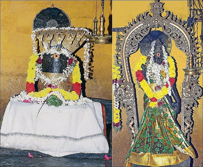 சுவாமிக்கும் அம்பாளுக்கும் இங்கே தனித் தனி விமானங்கள் உள்ளன. கோயிலில் பரிவார மூர்த்தங்களாக விநாயகர், கன்னி விநாயகர், சரஸ்வதி, வள்ளி, தேவசேனா சமேத சுப்பிரமணியர், சண்டிகேஸ்வரர், சப்த கன்னியர், பைரவர், சனீஸ்வரர் ஆகியோர் காட்சி தருகின்றனர்.