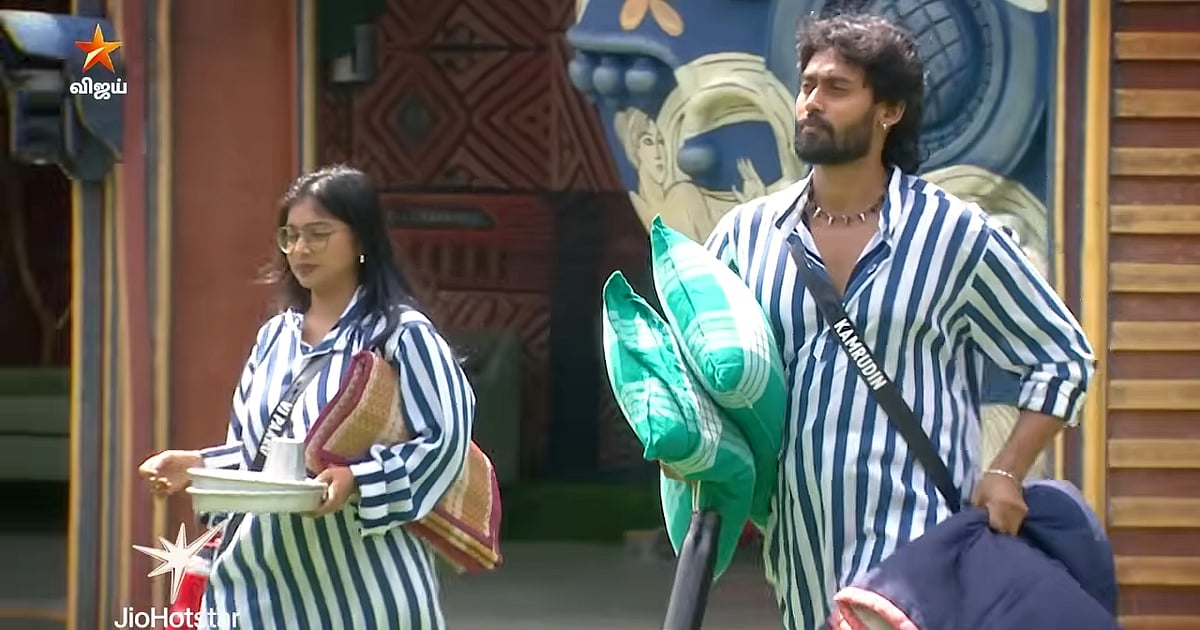 அதில் விஜே பார்வதியையும், கம்ருதீனையும் பிக் பாஸ் சிறைக்கு அனுப்புகிறார். அவர்கள் இருவரையும் கலையரசன் கிண்டல் செய்ய கம்ருதீன் கோபப்படுகிறார். “இங்க இருக்கிறதை அங்க சொல்றது. அங்க இருக்கிறதை இங்க சொல்றது. கலை ஒரு கேவலமான ஆள். வன்முறையைத் தூண்டுனவங்களை உள்ள வச்சுருக்காங்க. வாய்ல பேசுனவங்களை எல்லாம் வெளிய போடுறாங்க” என்று பார்வதி குமுறுகிறார்.