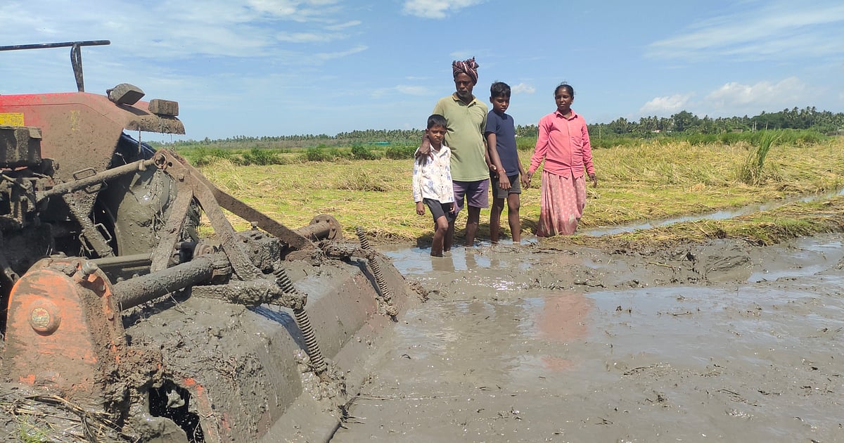 இந்நிலையில், விளைந்த நெல்லை அறுவடை செய்ய முடியாத துயர நிலைக்கு ஆளான பெண் விவசாயி விஜி, நான்கு ஏக்கரில் விளைந்த நெற்பயிர் வீணானதால் அறுவடை செய்யாமலேயே வயலிலேயே டிராக்டர் ஓட்டி அழித்த சம்பவம் சோகத்தையும், பரபரப்பையும் ஏற்படுத்தியுள்ளது.