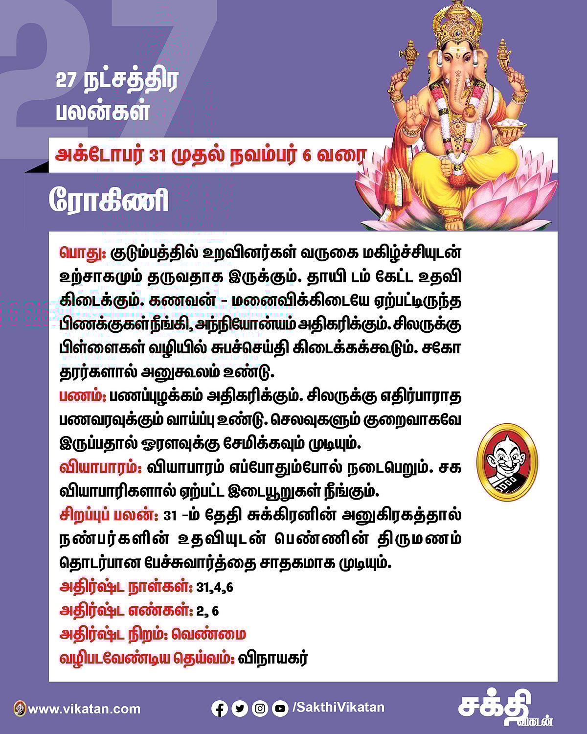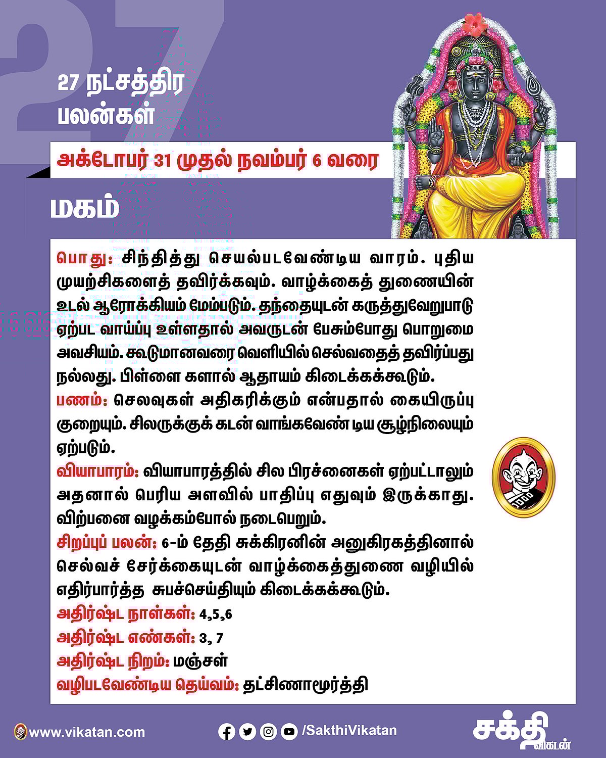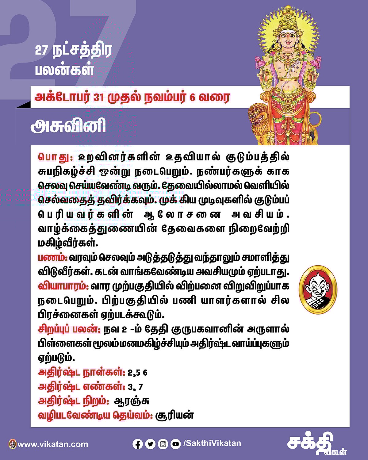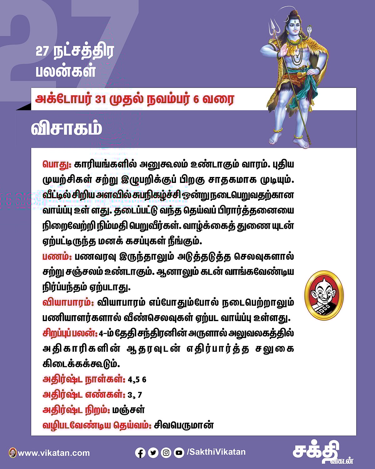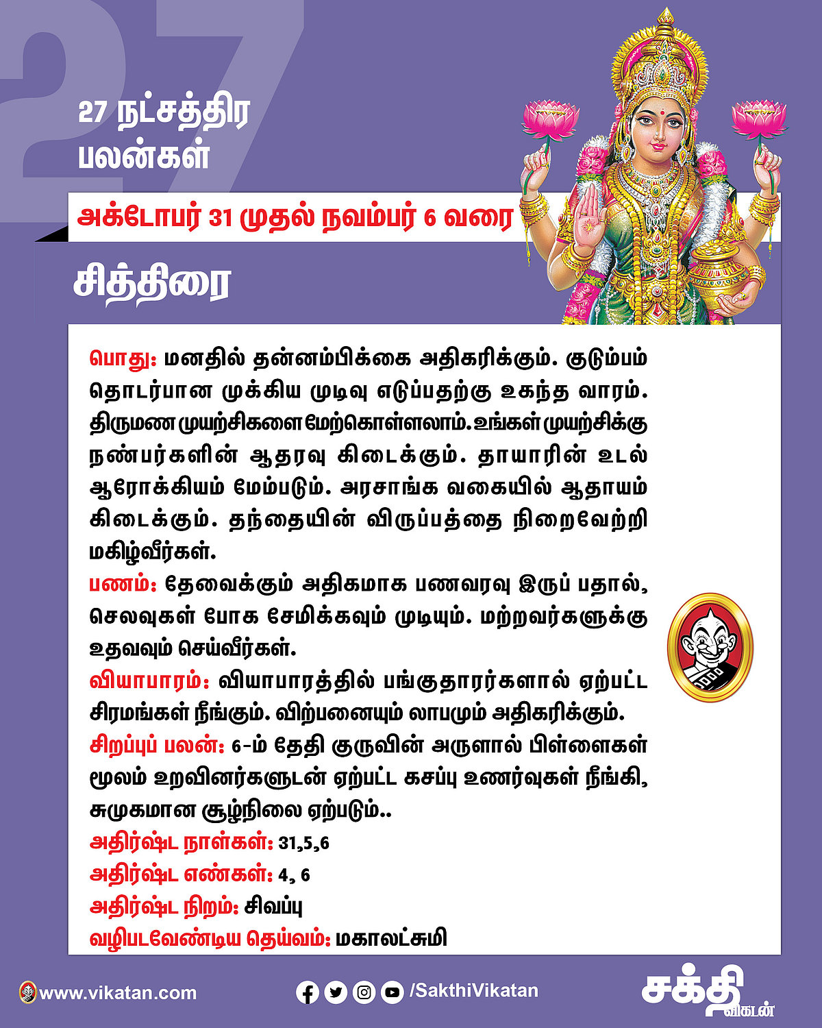 நட்சத்திரப் பலன்கள் அக்டோபர் 31 முதல் நவம்பர் 6 வரை #VikatanPhotoCards October 31, 2025 by விகடன் அசுவினி பரணி கிருத்திகை ரோகிணி மிருகசீரிடம் Source link