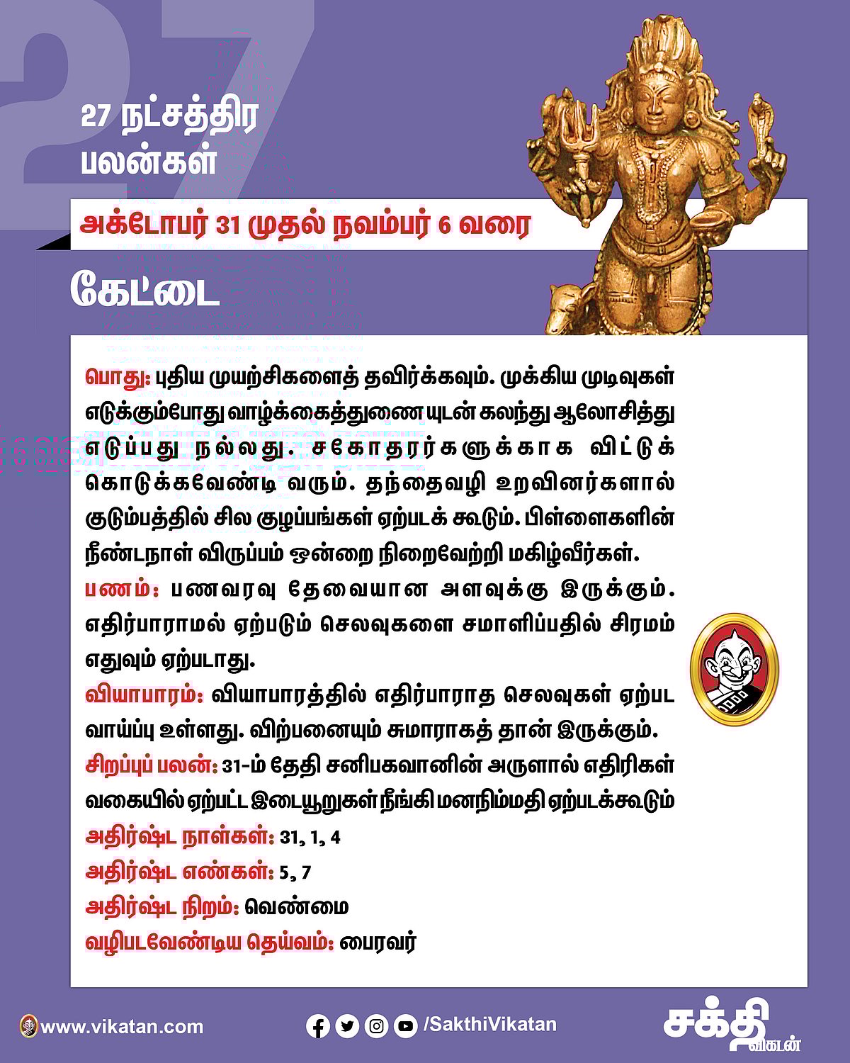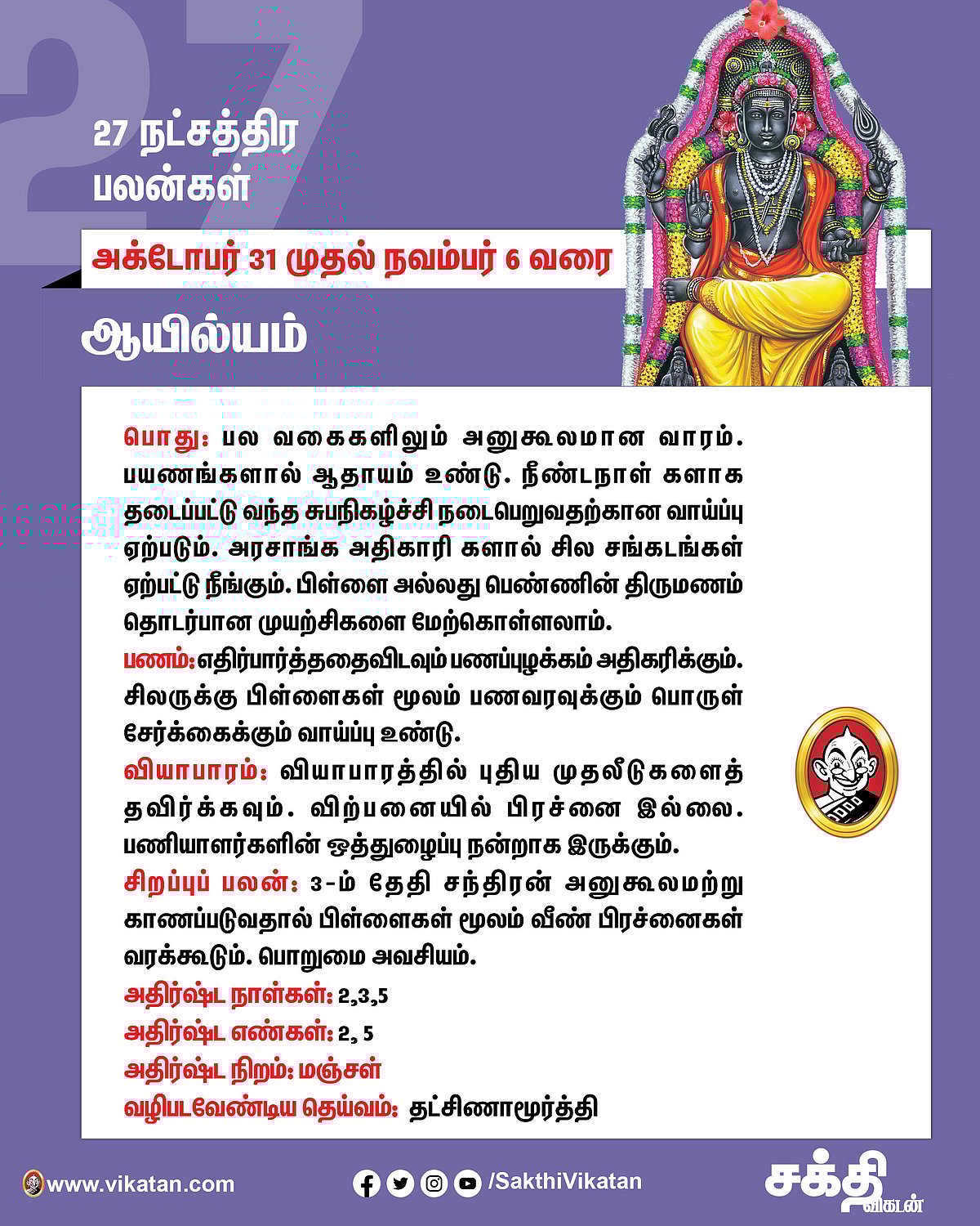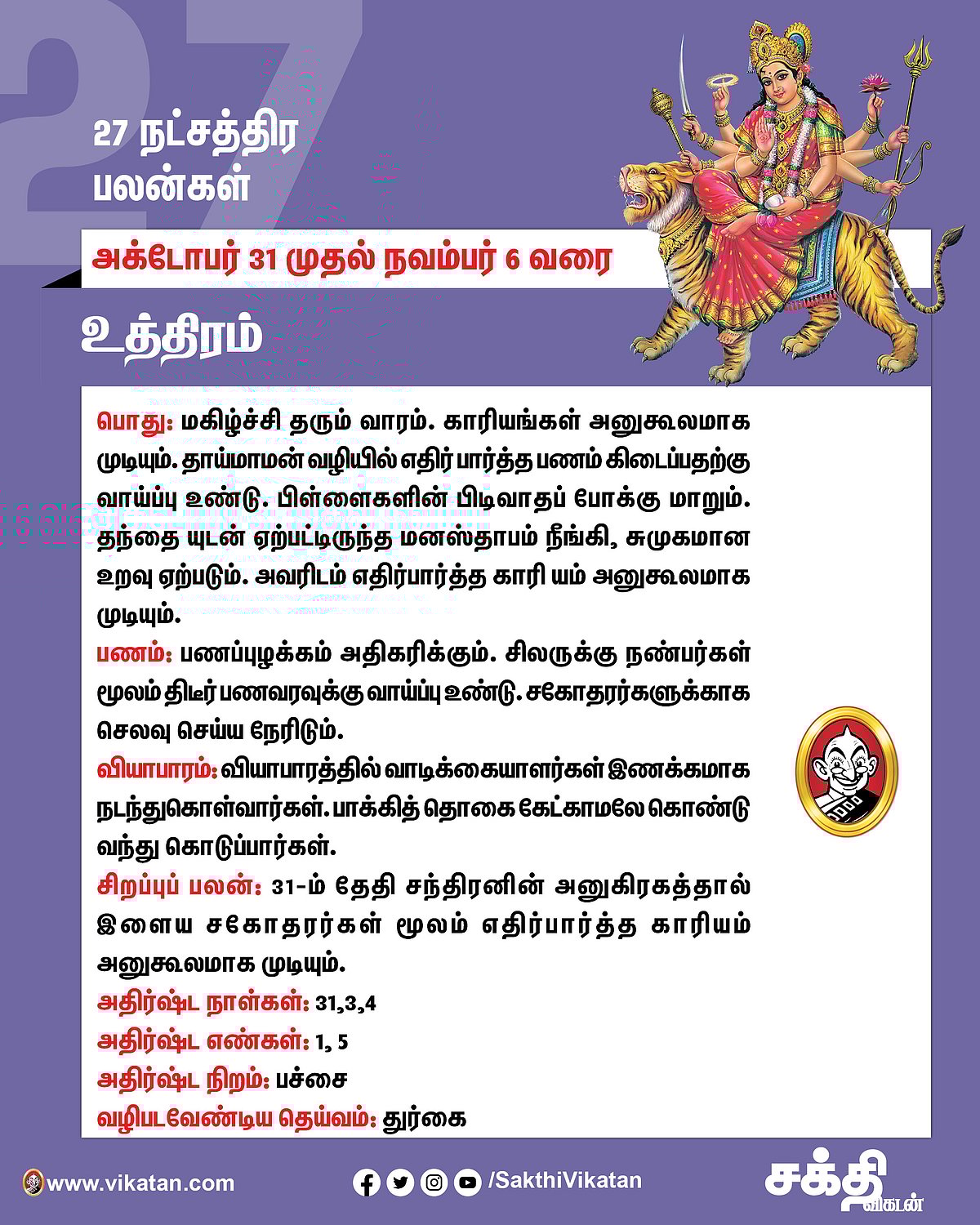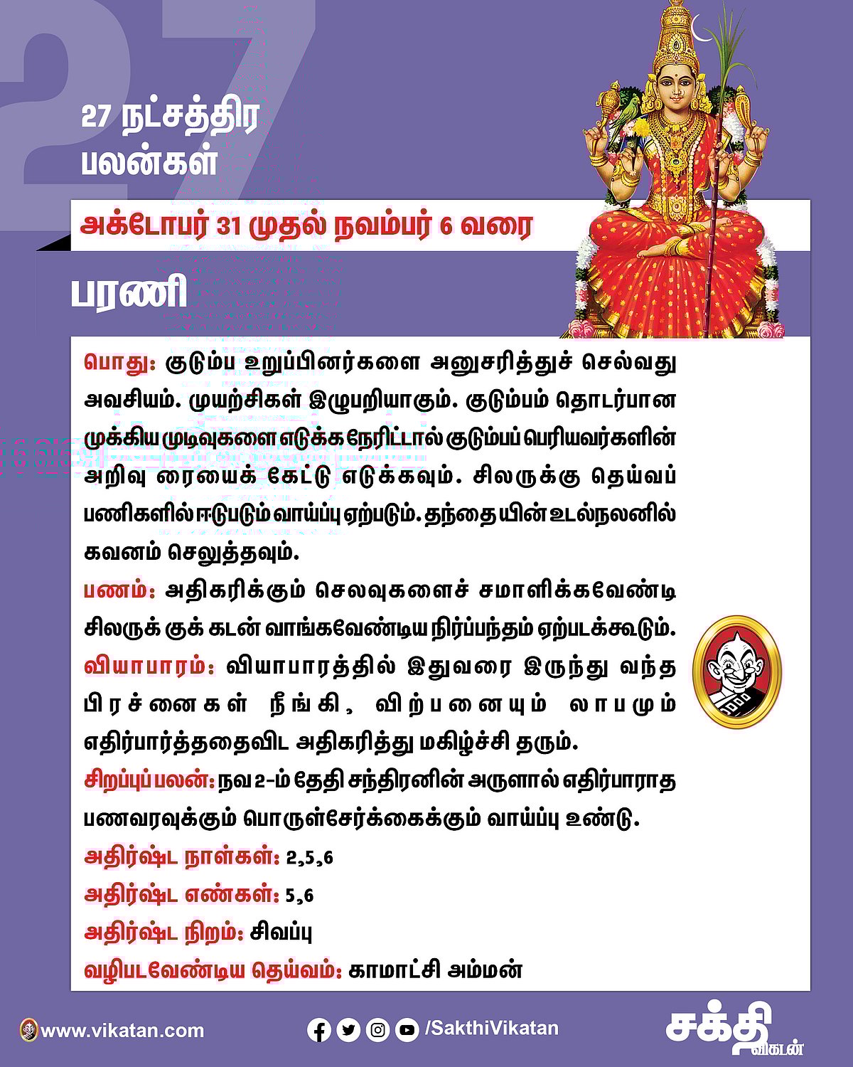 நட்சத்திரப் பலன்கள் அக்டோபர் 31 முதல் நவம்பர் 6 வரை #VikatanPhotoCards October 31, 2025 by விகடன் அசுவினி பரணி கிருத்திகை ரோகிணி மிருகசீரிடம் Source link