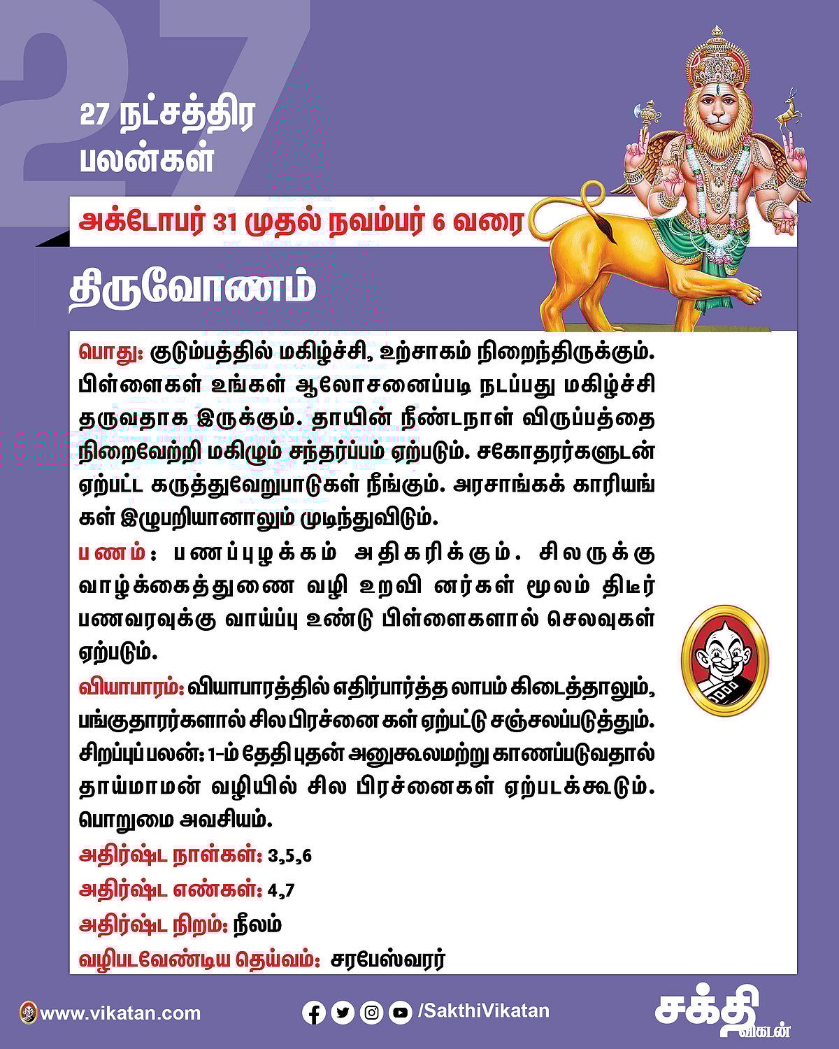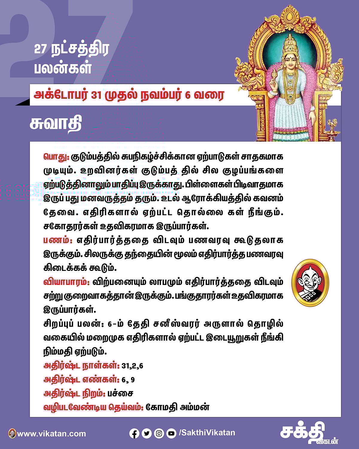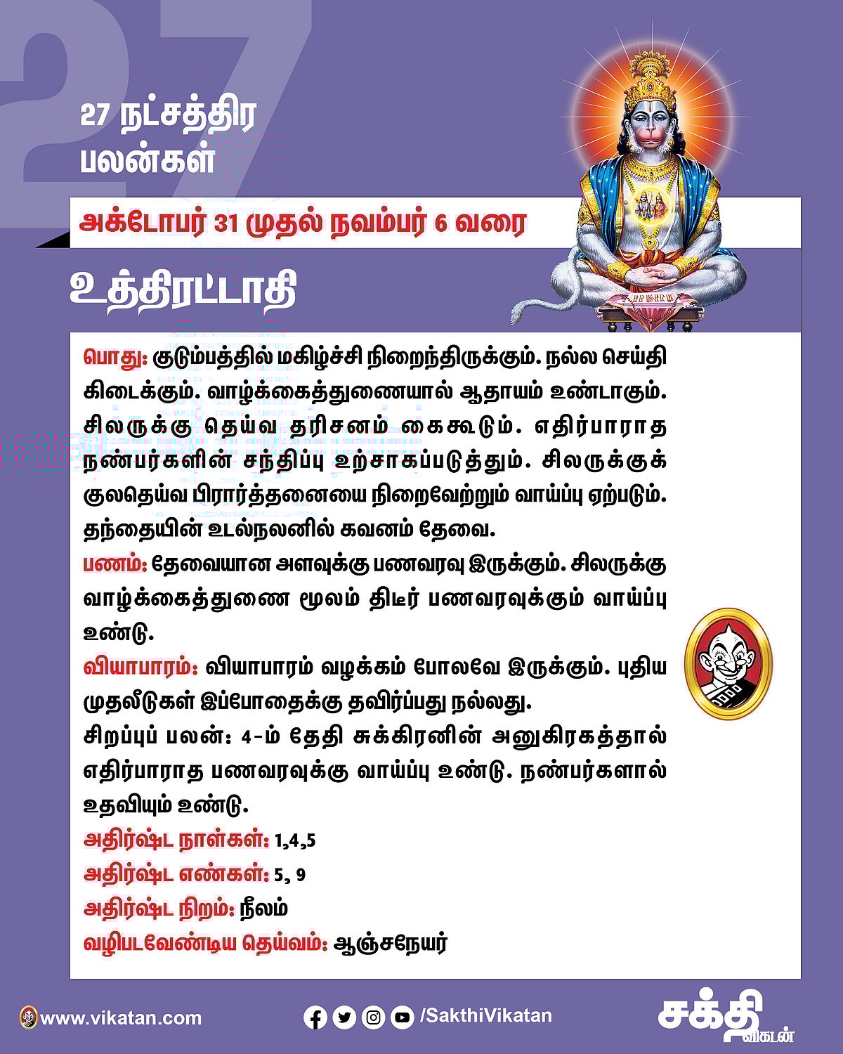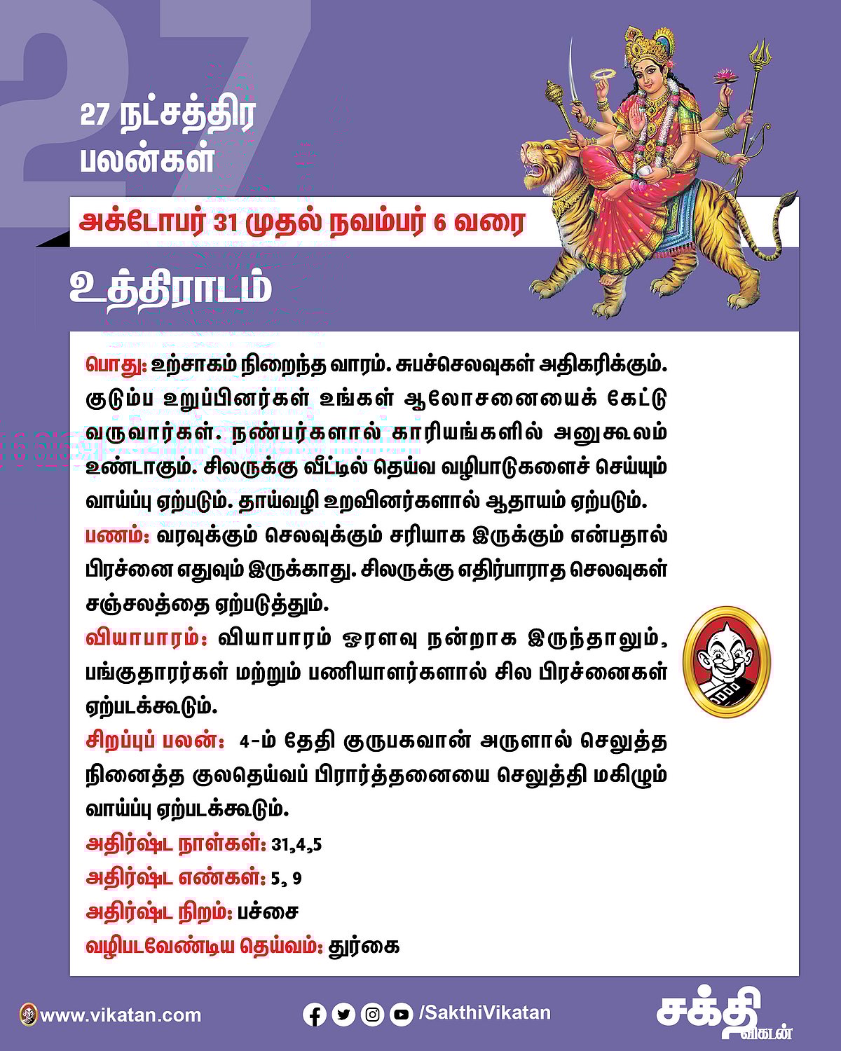 நட்சத்திரப் பலன்கள் அக்டோபர் 31 முதல் நவம்பர் 6 வரை #VikatanPhotoCards October 31, 2025 by விகடன் அசுவினி பரணி கிருத்திகை ரோகிணி மிருகசீரிடம் Source link