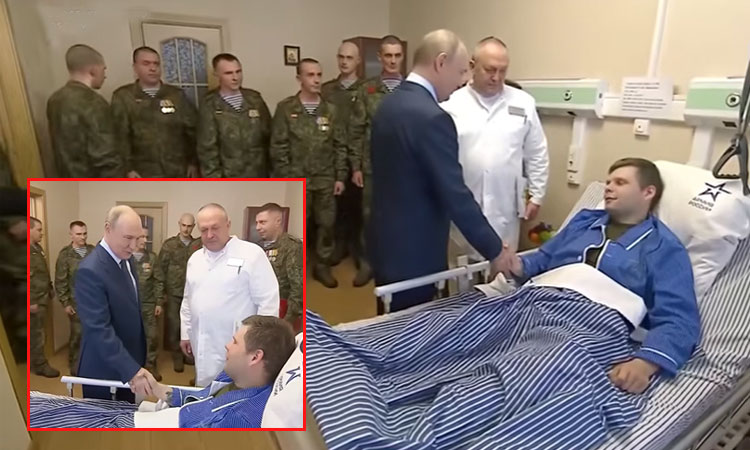 அப்போது அவருடன் ரஷிய பாதுகாப்பு மந்திரி சர்கே ஷொய்குவும் உடன் சென்றார். சிகிச்சையில் இருந்த வீரர் ஒருவரின் அருகே சென்று அவருடைய கையை பிடித்து நலம் விசாரித்த புதின் அவரிடம் பேசும்போது, நீங்கள் எனக்கு சிறப்பு வாய்ந்தவர் என கூறி புன்முறுவலை வெளிப்படுத்தினார். பின்னர் சுற்றியிருந்த வீரர்களை சுட்டிக்காட்டி, அவர்கள் அனைவரும் உங்களுக்கு கூட சிறப்பு வாய்ந்தவர்கள். ஏனெனில், அவர்கள் உங்கள் உயிரை காப்பாற்றியவர்கள் என்றார்.