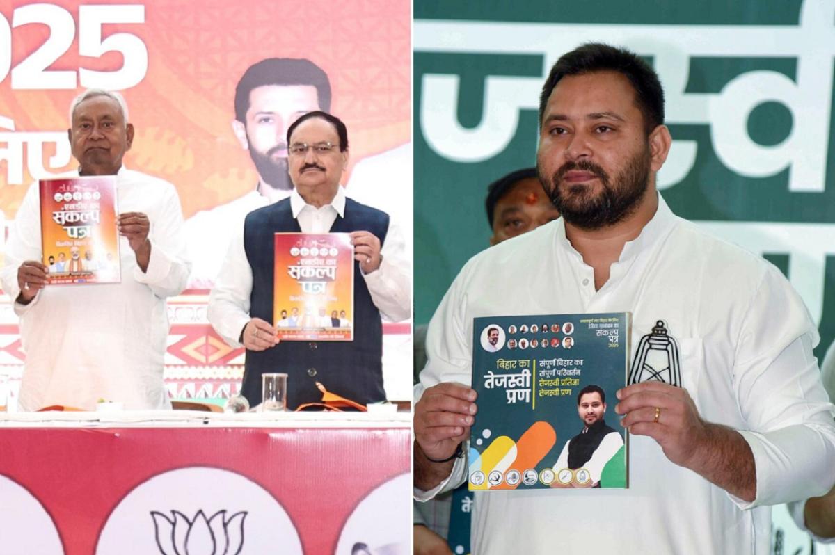 பிஹார் தேர்தலில் தேசிய ஜனநாயக கூட்டணி மற்றும் மகா கூட்டணி இடையே கடும் போட்டி நிலவிவரும் நிலையில், இரு கூட்டணிகளும் தங்கள் தேர்தல் அறிக்கைகளை முக்கிய ஆயுதமாக நம்பியுள்ளன. எனவே, இந்த இரு தேர்தல் அறிக்கைகளிலும் மக்களை கவரும் பல்வேறு வாக்குறுதிகள் இடம்பெற்றுள்ளன. முக்கியமாக இந்த கூட்டணிகளின் இரு தேர்தல் அறிக்கையிலும் தமிழக திட்டங்களின் தாக்கம் அதிகமாக உள்ளது ஆச்சர்யத்தை ஏற்படுத்தியுள்ளது.