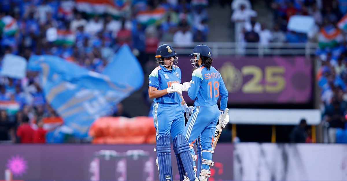 முதல் 10 ஓவர்களில் 64 ரன்களை சேர்த்திருந்தனர். முதல் விக்கெட்டுக்கு இருவரும் சேர்ந்து 104 ரன்களை எடுத்தனர். இடது கை ஸ்பின்னர்களுக்கு இந்திய அணியின் பேட்டர்கள் கொஞ்சம் திணறுகின்றனர். இந்தியாவும் தென்னாப்பிரிக்காவும் மோதிய கடைசிப் போட்டியிலும் நிறைய விக்கெட்டுகளை இடதுகை ஸ்பின்னருக்கு விட்டிருப்பர். இந்தப் போட்டியிலும் முதல் விக்கெட்டாக ஸ்மிருதியின் விக்கெட்டை இடது கை ஸ்பின்னரான ட்ரையான் தான் எடுத்தார். ஸ்மிருதி 45 ரன்களில் வெளியேறினார். ஷெபாலி தொடர்ந்து அதிரடியாக ஆடினார். பெரிய சிக்சர்களையெல்லாம் அடித்தார்.