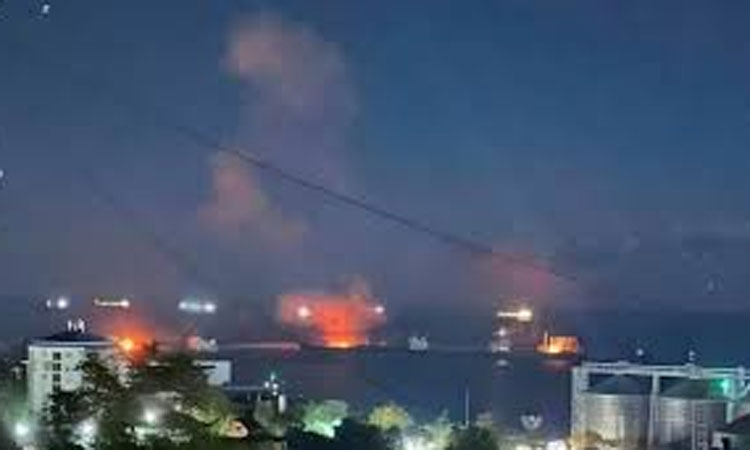 ரஷிய எண்ணை கப்பல்-துறைமுகம் மீது உக்ரைன் டிரோன் தாக்குதல்