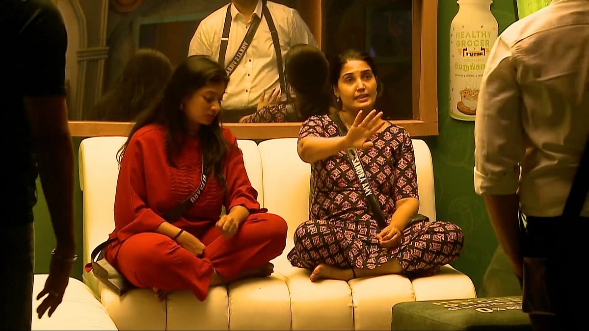 பொறுப்பில் இருக்கும் ஒருவர் சொல்வதை அடாவடியாக மறுத்துப்பேசினால் அந்த எரிச்சல் எப்படியாக இருக்கும் என்பது பாருவிற்கு இப்போது புரிந்திருக்கும். இதிலிருந்தாவது அவர் பாடம் கற்றுக்கொள்வாரா? எப்படியோ சாண்ட்ராவிடம் பாரு பம்மி பம்மி பேசும்போது அத்தனை ஆனந்தமாக இருந்தது. என்றாலும் பாருவிற்குள் இருக்கும் துடுக்குத்தனம் போய் விடுமா என்ன? “பொருட்களையெல்லாம் லவட்டிட்டு போய்டாதீங்க” என்று வாய்விட்டு விட்டார்.