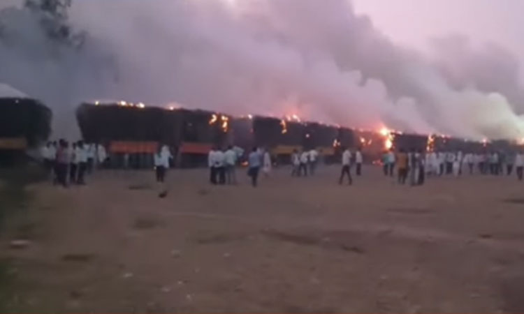 இந்த நிலையில், பாகல்கோட் பகுதியில் கோதாவரி சர்க்கரை ஆலை முன்பு நிறுத்தி வைக்கப்பட்டு இருந்த 50-க்கும் மேற்பட்ட டிராக்டர்களை கரும்பு விவசாயிகள் தீ வைத்து கொளுத்தினர். இதனால் பரபரப்பான சூழல் ஏற்பட்டு உள்ளது.