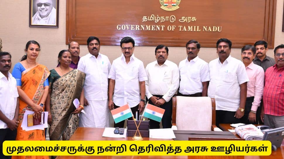Tamil Nadu DA hike : அகவிலைப்படி 3% உயர்த்தியதற்கு தமிழ்நாடு முதலமைச்சர் மு.க.ஸ்டாலினை அரசு ஊழியர், ஆசிரியர் சங்கத்தினர் நேரில் சந்தித்து நன்றி தெரிவித்தனர்.