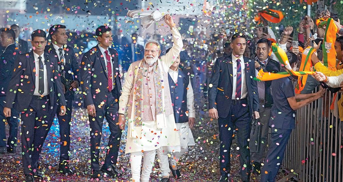 புதுடெல்லி: டெல்லியில் உள்ள பாஜக தலைமை அலுவலகத்தில் நேற்று இரவு பிஹார் தேர்தல் வெற்றி விழா கொண்டாடப்பட்டது. இதில் பிரதமர் நரேந்திர மோடி பங்கேற்றார்.