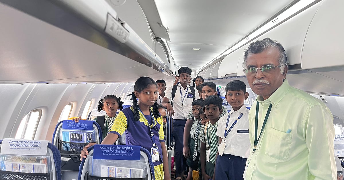 ’’வானத்துல இருந்து பூமியைப் பார்த்தோம்’’ – மாணவர்களை விமானத்தில் பறக்க வைத்த நல்லாசிரியர்!