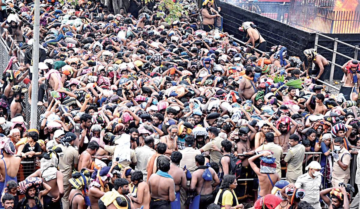சபரிமலை ஐயப்​பன் கோயி​லில் ஆன்​லைன் மூலம் 70 ஆயிரம் பேரும், ஸ்பாட் புக்​கிங் மூலம் 20 ஆயிரம் பேரும் என மொத்​தம் 90 ஆயிரம் பக்​தர்​கள் தின​மும் அனு​ம​திக்​கப்​படு​வர் என்று தேவசம் போர்டு தெரி​வித்​துள்​ளது. ஆனால் ஸ்பாட் புக்​கிங்​கில் கட்​டுப்​பாடின்றி பக்​தர்​கள் அனு​ம​திக்​கப்​படு​கின்​றனர். இதனால் நெரிசல் ஏற்​பட்டு பம்​பை, மரக்​கூடம் உள்​ளிட்ட பல பகு​தி​களி​லும் பக்​தர்​கள் வெகுநேரம் நிறுத்தி வைக்​கப்​பட்டு பின்பு அனு​ம​திக்​கப்​படு​கின்​றனர். 6 மணி நேரத்​துக்​கும் மேல் காத்​திருக்​கும் நிலை ஏற்​படு​கிறது. அது​வரை குடிநீர், கழிப்​பிட வசதி இல்​லாத​தால் பக்​தர்​கள் பெரும் பரித​விப்​புக்கு உள்​ளாகி வரு​கின்​றனர். இத்​துடன் கடும் நெரிசலும் ஏற்​படு​வ​தால் பலருக்​கும் மூச்​சுத்​திணறல் ஏற்​பட்டு வரு​கிறது.