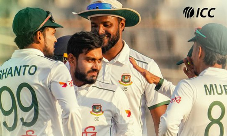பின்னர் 211 ரன்கள் முன்னிலையுடன் 2-வது இன்னிங்சை தொடங்கிய வங்காளதேசம் 3-வது நாள் முடிவில் ஒரு விக்கெட் இழப்பிற்கு 156 ரன்கள் அடித்து மொத்தம் 367 ரன்கள் முன்னிலை பெற்று வலுவான நிலையில் உள்ளது. ஷாத்மன் இஸ்லாம் 69 ரன்களுடனும், மொமினுல் ஹக் 19 ரன்களுடனும் களத்தில் உள்ளனர். ஹசன் ஜாய் 60 ரன்களில் ஆட்டமிழந்தார்.