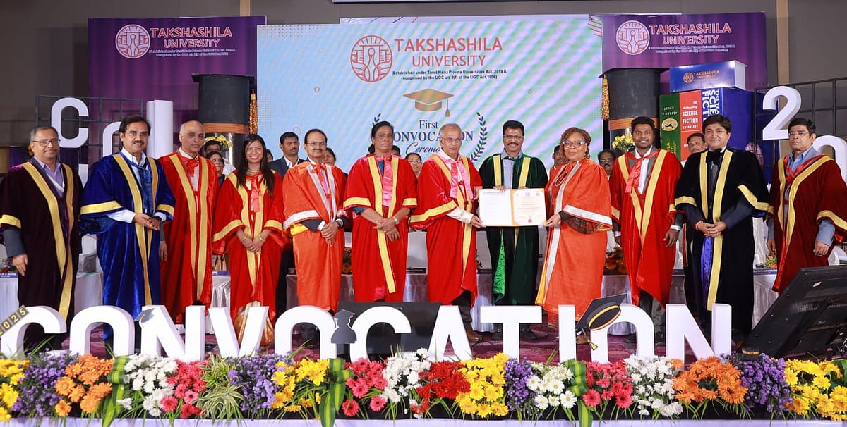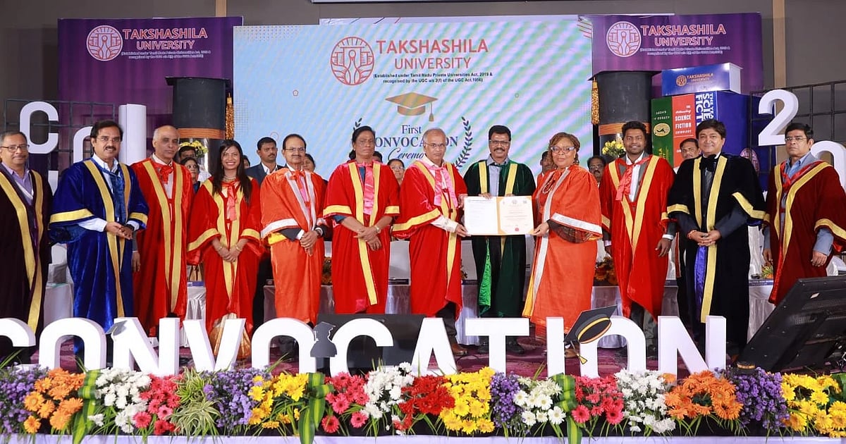இதுகுறித்துப் பேசிய பல்கலைக்கழகத்தின் பதிவாளர் டாக்டர் செந்தில், “எங்கள் ஸ்ரீமணக்குள விநாயகர் கல்வி அறக்கட்டளை சார்பில் கடந்த ஆண்டு தட்சசீலா பல்கலைக்கழகம் துவங்கப்பட்டது. அதன் முதலாவது பட்டமளிப்பு விழாவில் முக்கியமான இருவருக்கு கௌரவ டாக்டர் பட்டங்கள் அளிக்க முடிவு செய்தோம்.