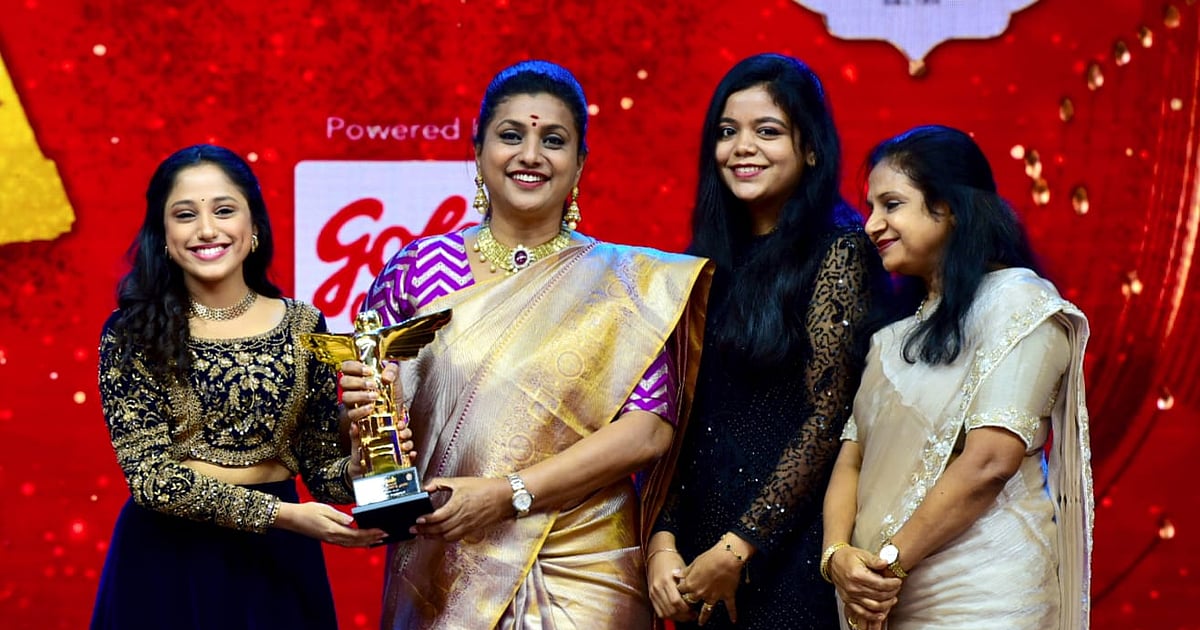 அரசியல்வாதியும் நடிகையுமான ரோஜா கையில் விருதுபெற்ற இனியா ராஜகுமாரன், “ரோஜா ஒரு பவர்ஃபுல்லான வுமன். அவங்க கிட்ட இருந்து அவார்ட் வாங்கினதில் ரொம்ப ஹேப்பி.