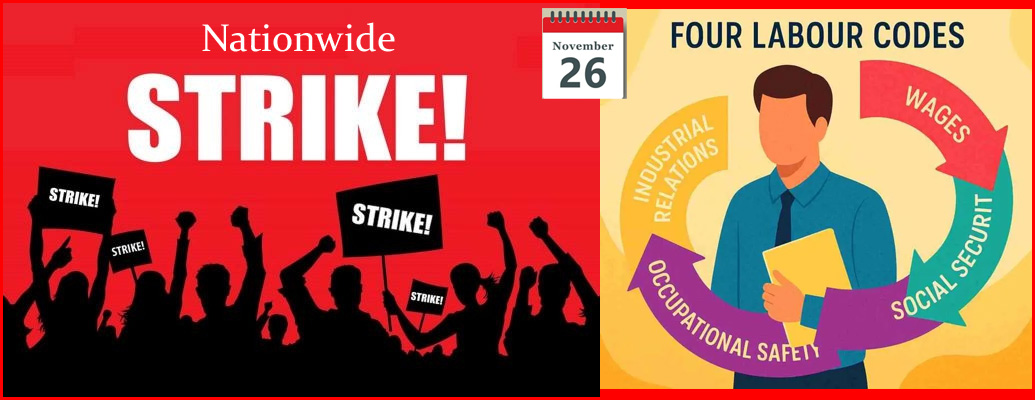 சென்னை: மத்தியஅரசின் புதிய தொழிலாளர் சட்டங்களை எதிர்த்து வரும் 26ஆம் தேதி நாடு தழுவிய பொது வேலை நிறுத்தம் நடைபெறும் என தொழிற்சங்கங்கள் கூட்டாக அறிவிப்பு வெளியிட்டு உள்ளது. மத்திய அரசு அமல்படுத்தியுள்ள 4 புதிய தொழிலாளர் சட்ட தொகுப்புகளுக்கு எதிர்ப்பு தெரிவிக்கும் வகையில் நவ.26ஆம் தேதி நாடு தழுவிய பொது வேலைநிறுத்த போராட்டம் நடைபெறும் என மத்திய தொழிற்சங்கங்கள் கூட்டாக அறிவித்துள்ளன. இதுதொடர்பாக அய்என்டியுசி, ஏஅய்சிடியுசி, எச்எம்எஸ், சிஅய்டியு,தொமுச உள்பட 10 மத்திய தொழிற்சங்கங்கள் சார்பில் […]
